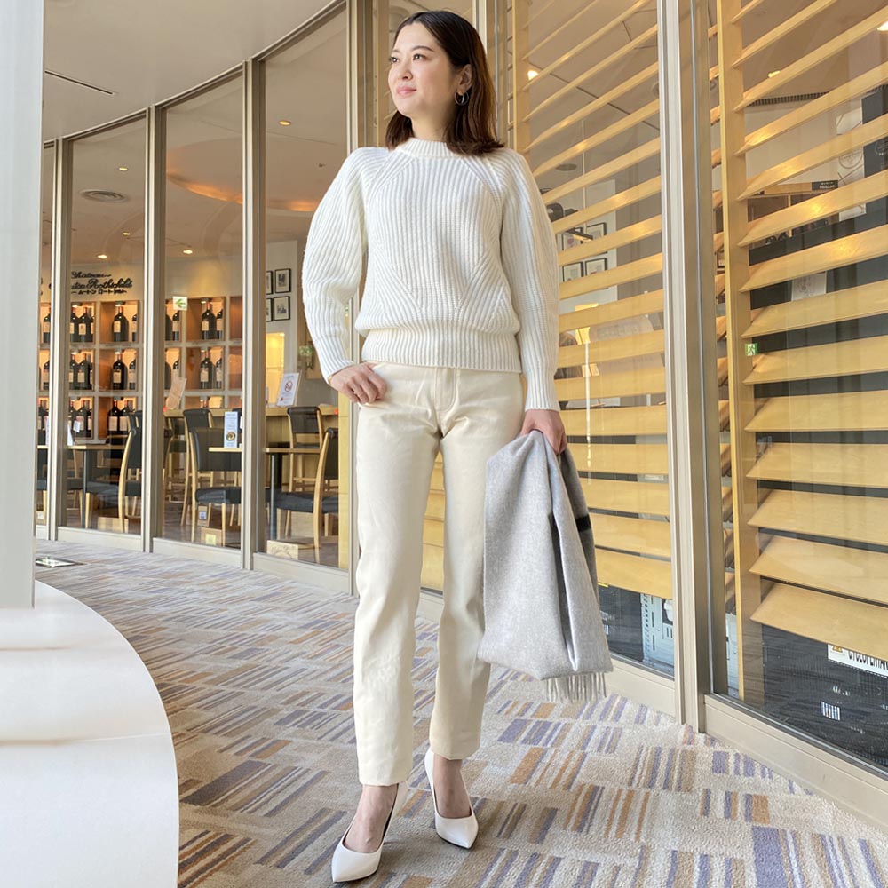 チュニックやロング丈のニットともバランスが良く、トップスの着丈を選ばないパンツです。