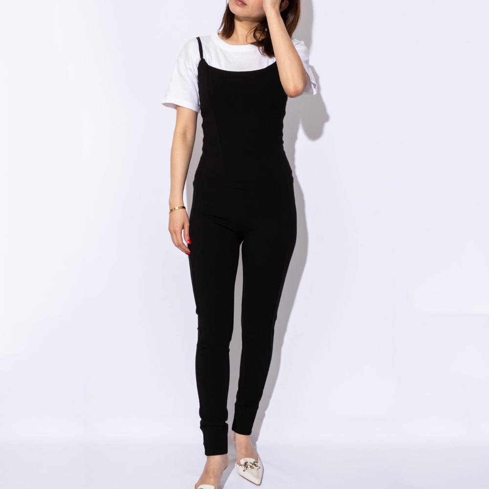 レイヤードでなどでも重宝するジャージーストレッチのオールインワン。