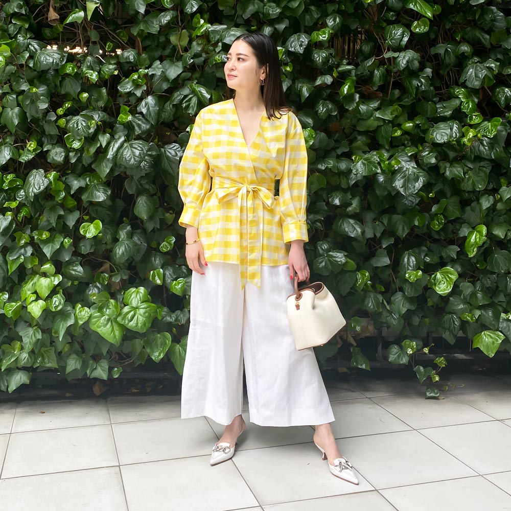 キャンディの包み紙のようなポップなカラーのチェックは同系色でまとめているので、上品な雰囲気をキープし遊び心をプラスしてくれます。