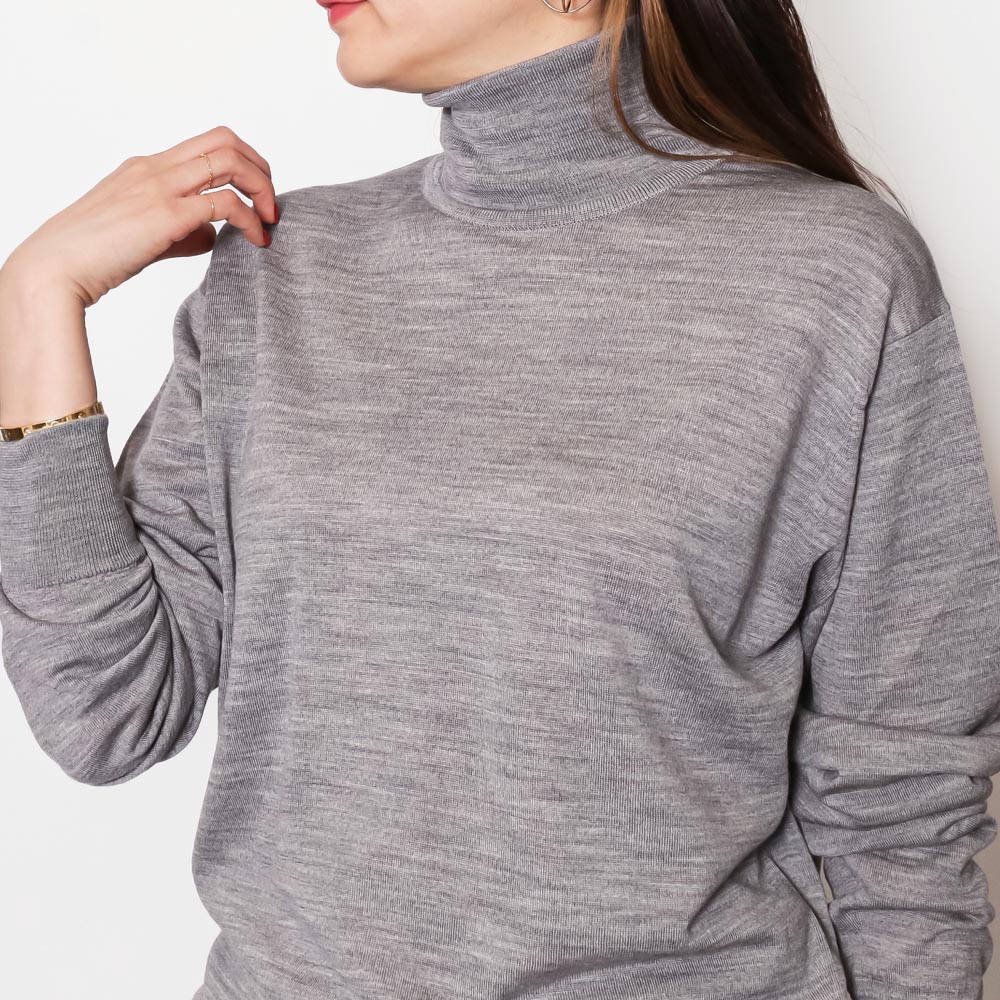 暖かい着心地で滑らかな手触りが魅力ですが、ニットに艶があり風合いがとても美しいところも是非着目していただきたいです。