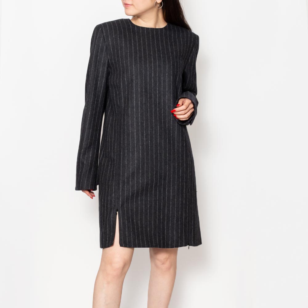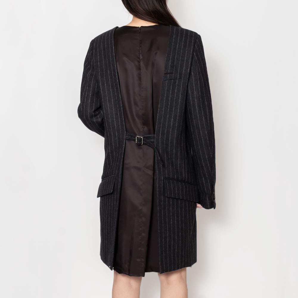 メンズのジャケットを解体して作られたクルーネックのミニワンピース。