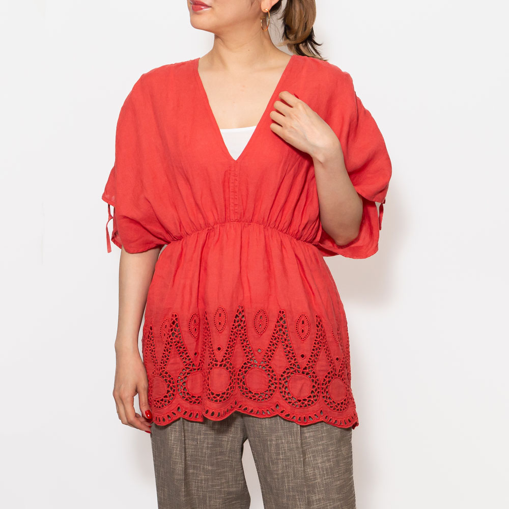 裾がカットワークレースになっており、透け感がシーズンムードを更に盛り上げます。
