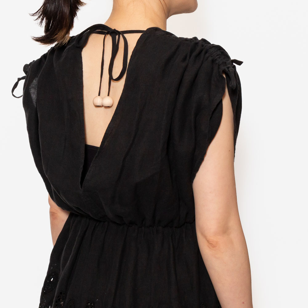 背中や首元の肌の露出も横に開き過ぎないのと、腕の露出も調整できるので合わせる服でアレンジができる服です。