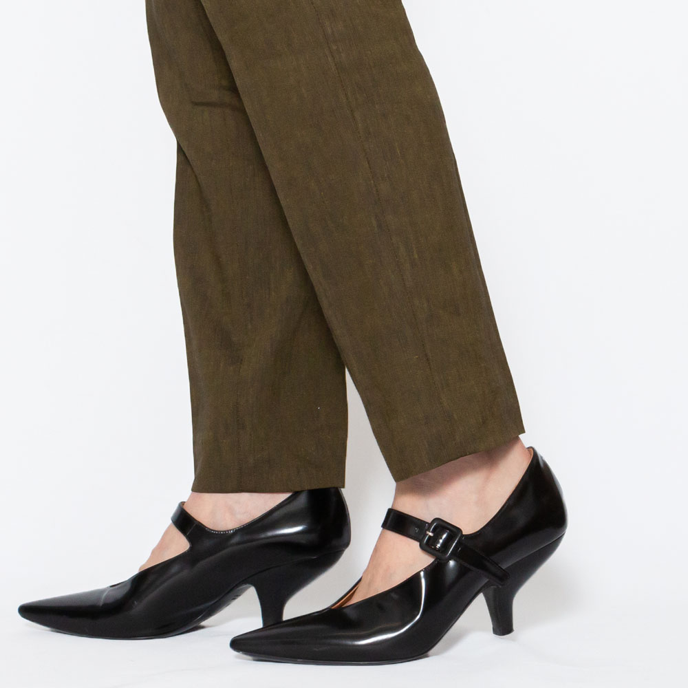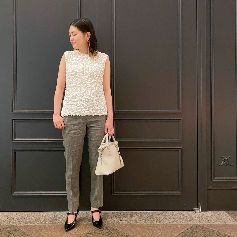 裾にかけてすっと細くなっていく膝下のラインも、無駄なゆとりがなくシルエットの美しさを発揮。