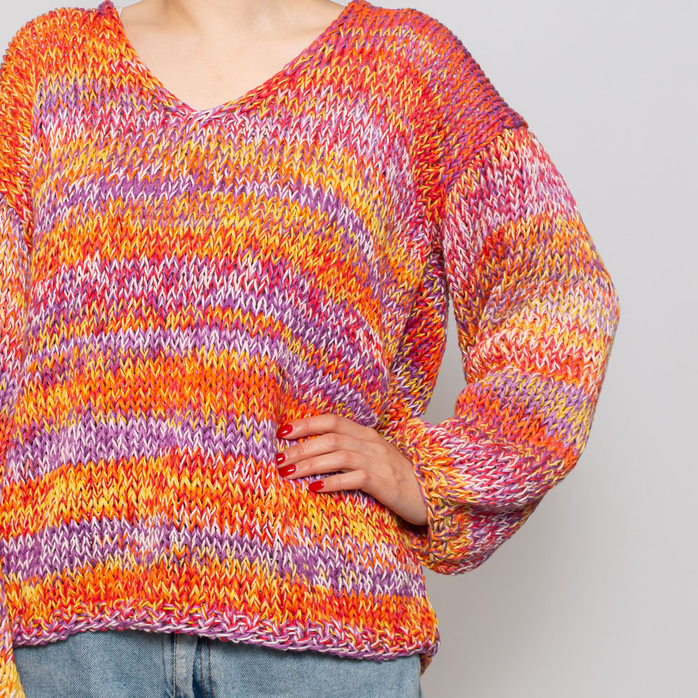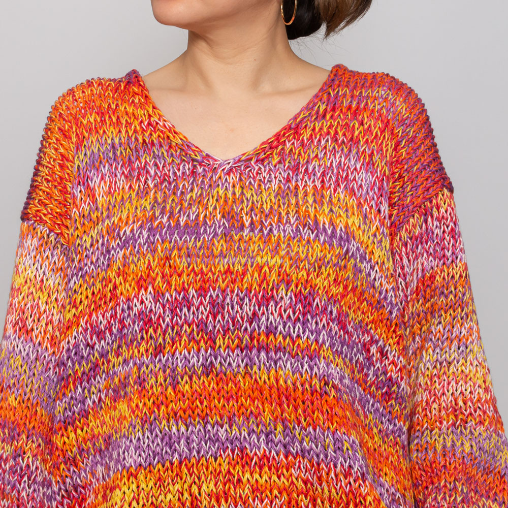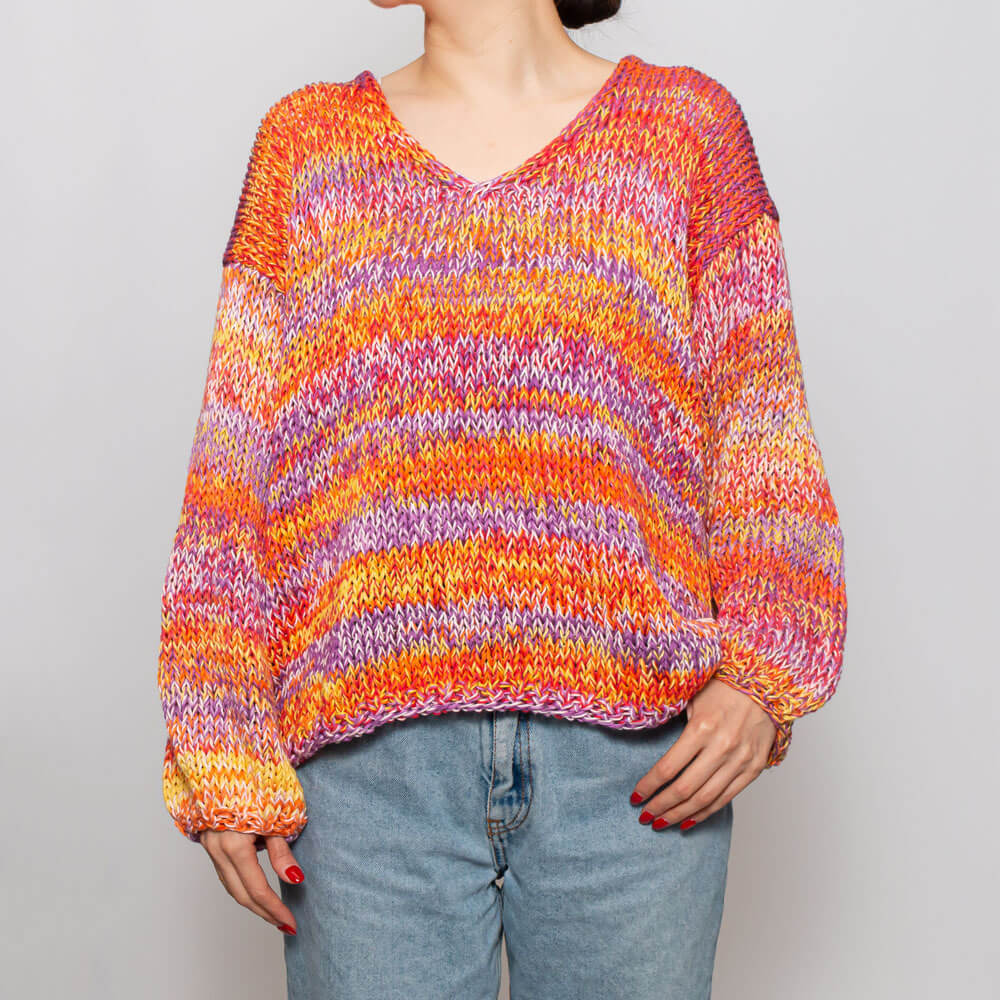 スタイリングがぱっと華やぎポイントになるニットプルオーバー。