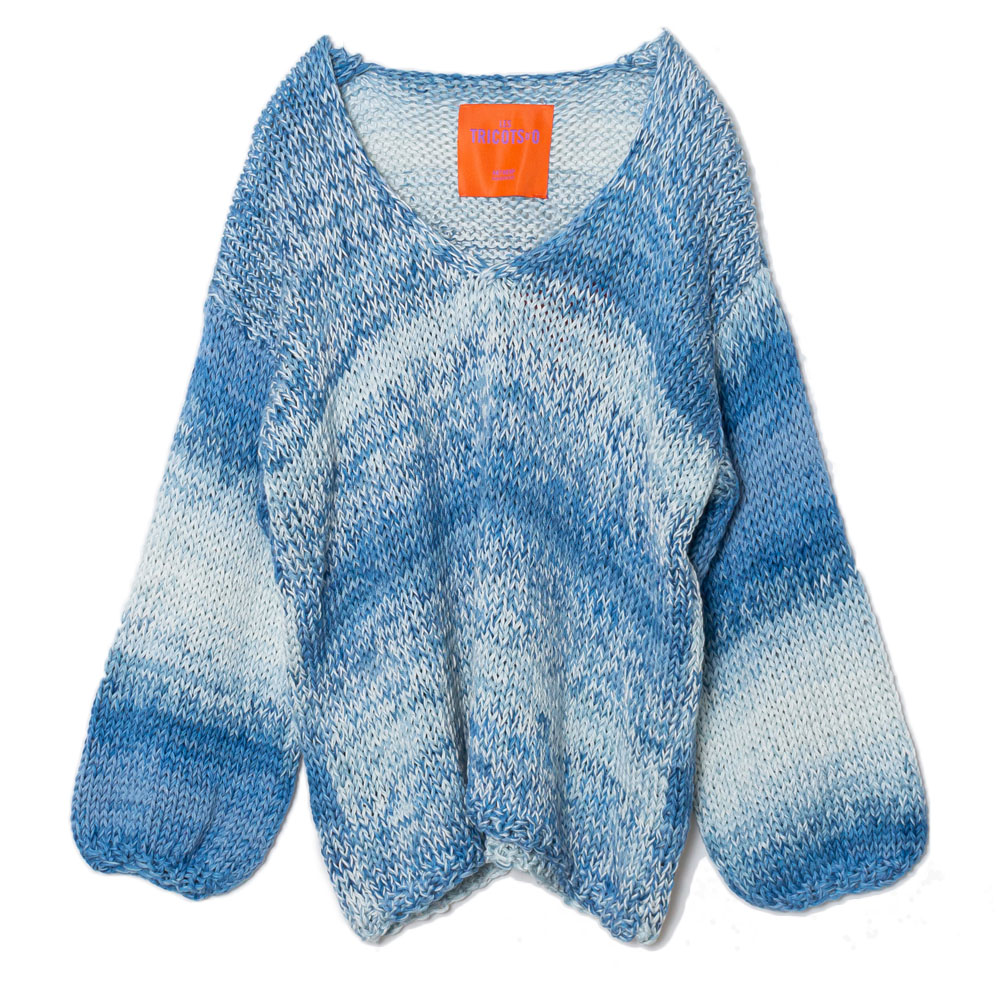 手触りの良いコットンのニットで1つ1つ丁寧に編み上げられたローゲージのニット。