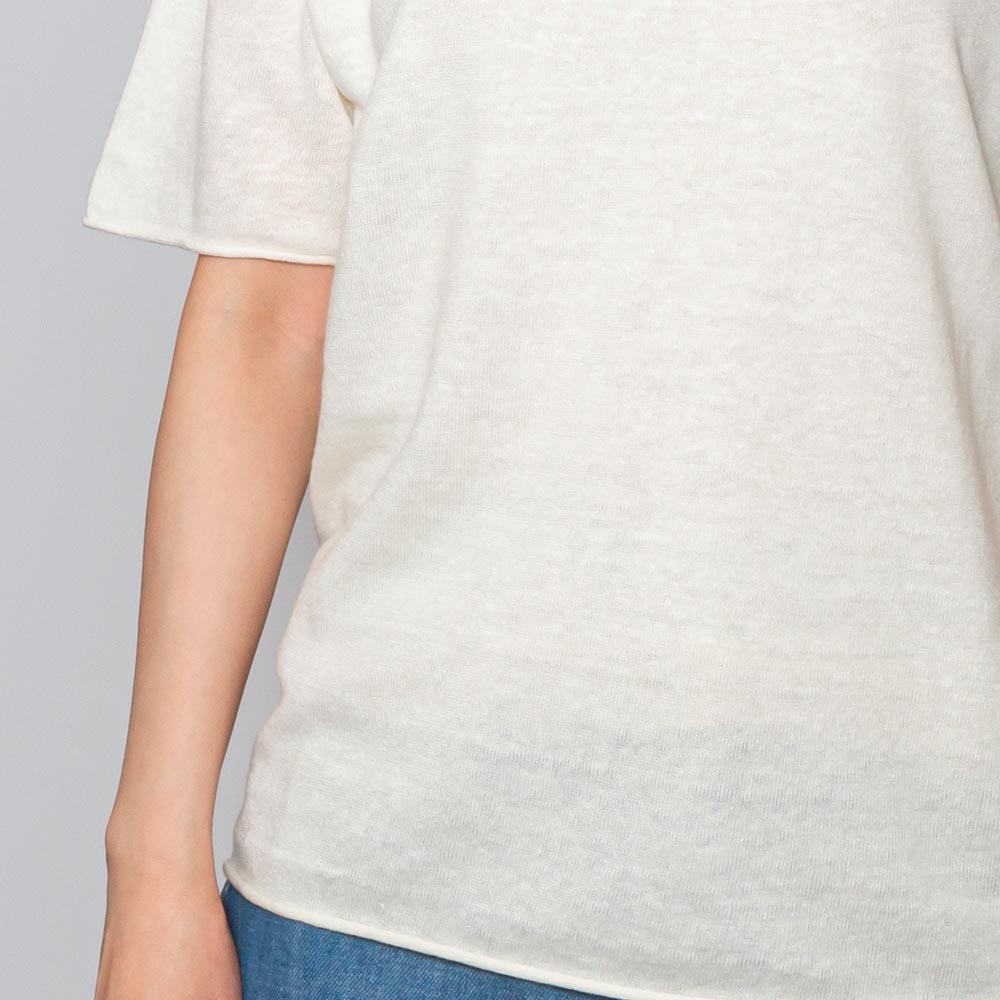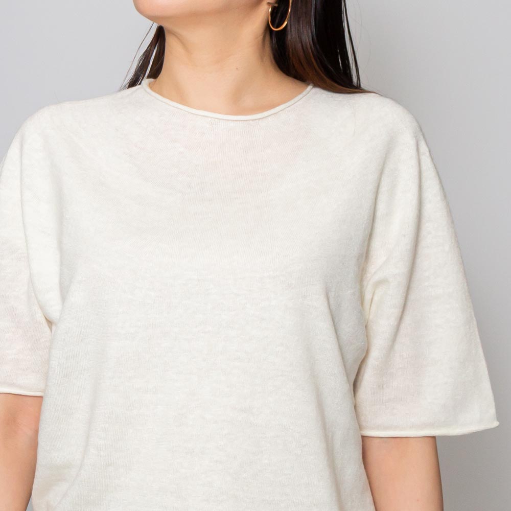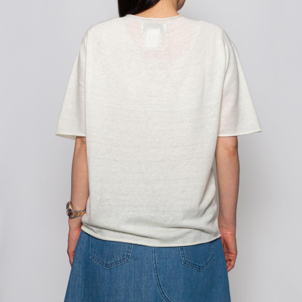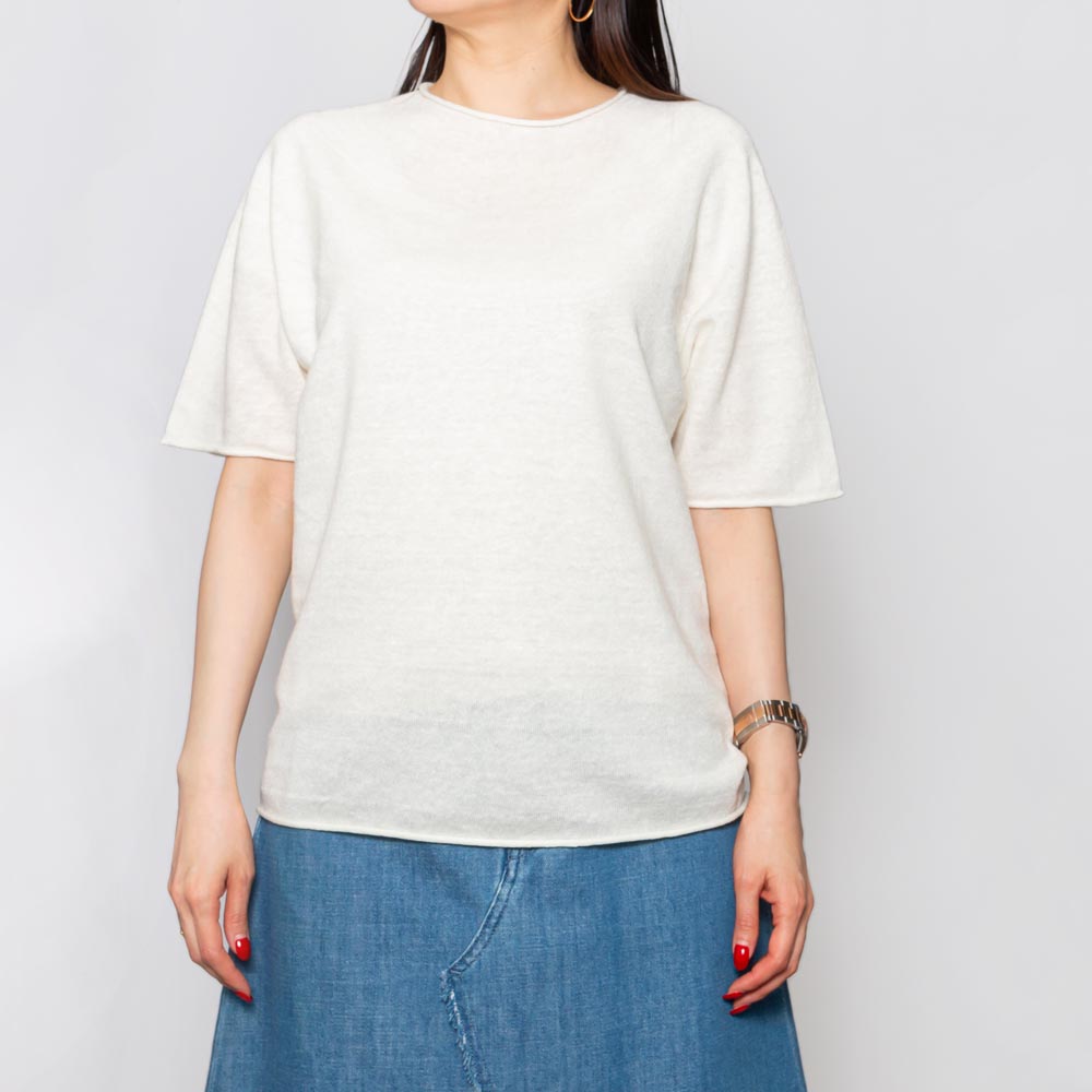 オーバーシルエットのTシャツのフォルムをニットに落とし込んだようなデザインで、ラフなニュアンスが漂います。