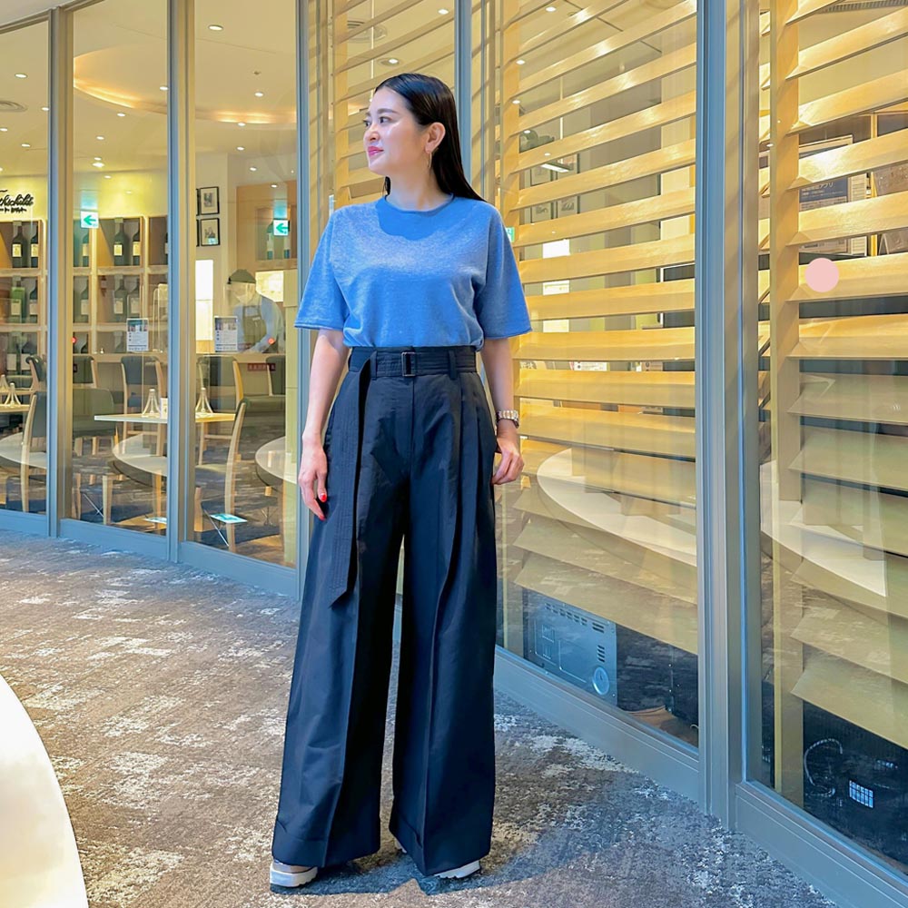 デザインだけでなくニットの素材も抜け感があり、ナチュラルなニュアンスが肩ひじ張らないお洒落を演出します。