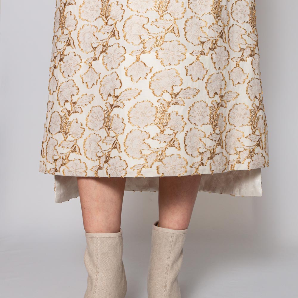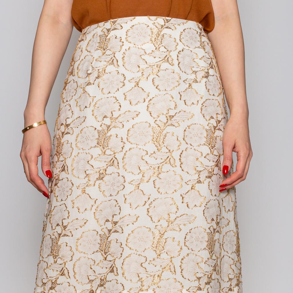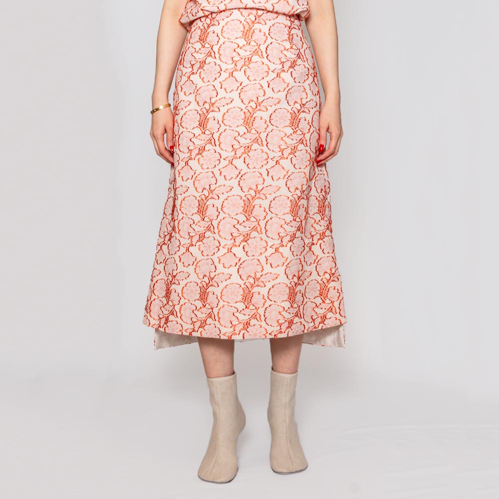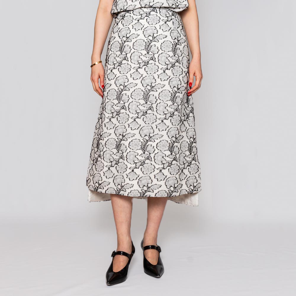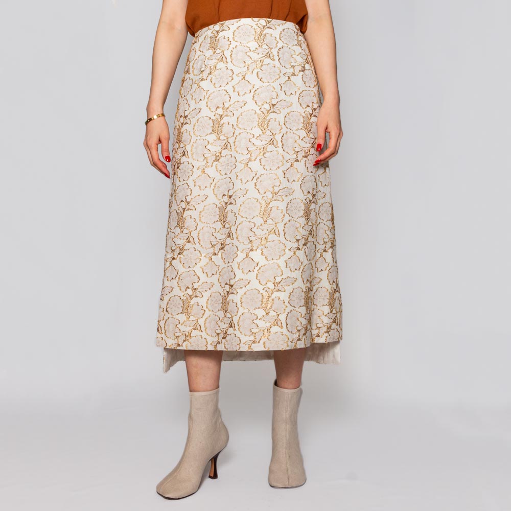 立体感のあるジャガード生地が着映えする優美な表情のスカート。