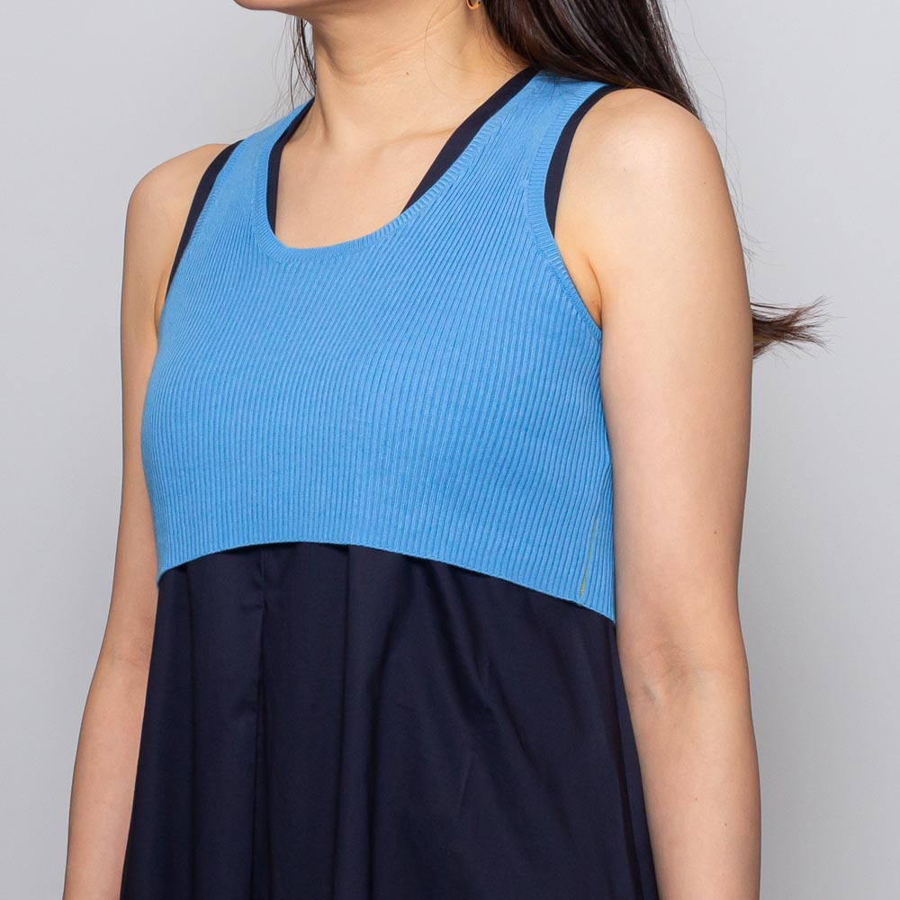 レイヤードで重ねて着用したり、トップスとして着用したりアレンジが多彩で、スポーティなニュアンスがミックスされてスタイリッシュな雰囲気をまとっています。