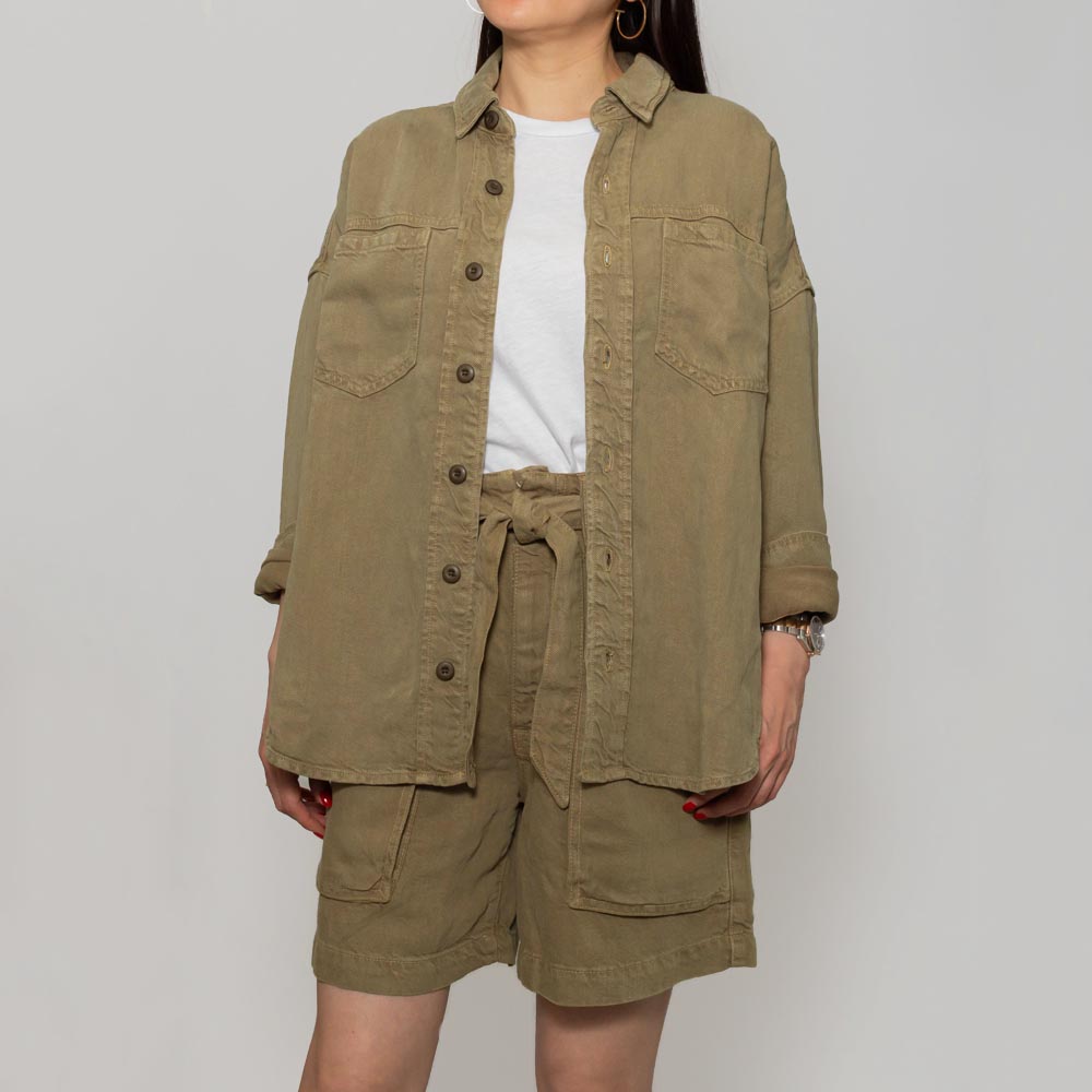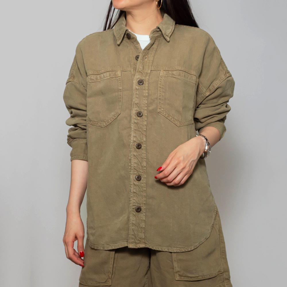 ワークウェアにインスパイアされたボタンアップのシャツ。