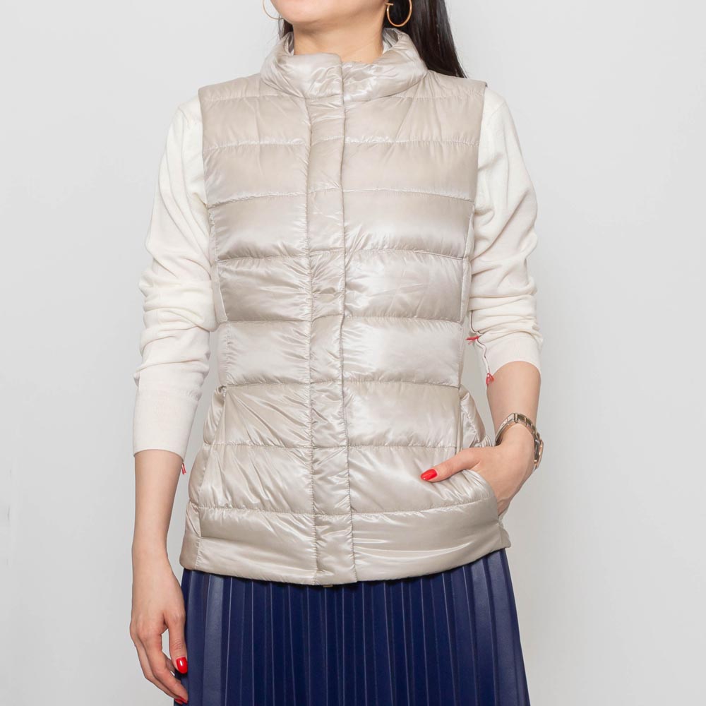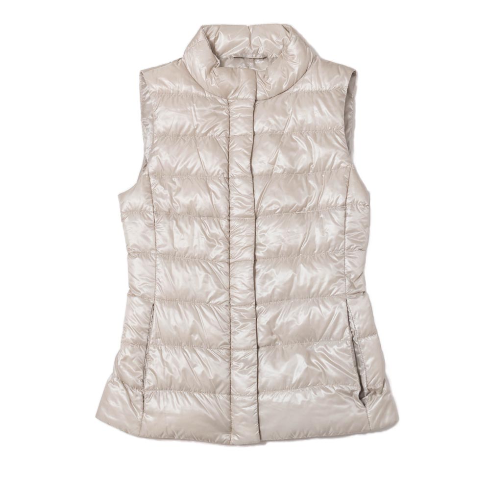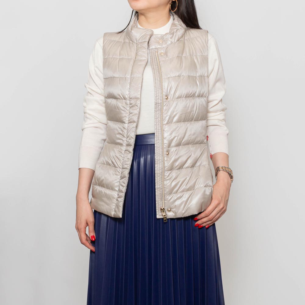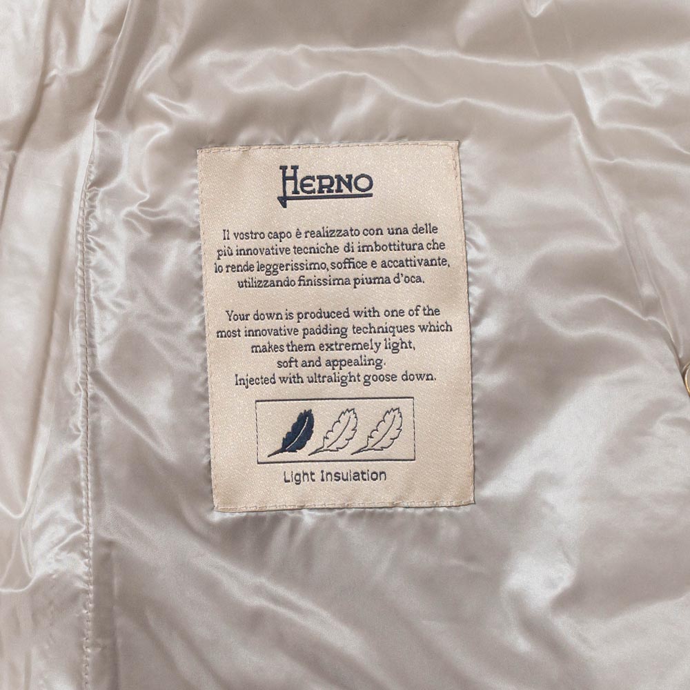 <デザイン> ベストセラーに輝く10モデルに限定した「ICONICO」という特別なコレクションで展開している、定番のダウンベスト。 シルエットの美しさが際立つシンプルなデザインで、コーディネートでも合わせやすく、機能的でフレキシブルなモデルです。 HERNO(ヘルノ)が得意とする細身のシルエットを取り入れており、ウエストをシェイプしたデザインが特徴。 ジップを開けて着用した際もバランスが崩れず、女性らしさを感じる綺麗なシルエットに仕上がりました。 <素材> 撥水性を持つ20デニールのナイロン ウルトラライトと名付けられた、上品な艶感のナイロン生地を使用しています。 インジェクションという技法を用いて、ダウンを直接封入することで驚くほどの軽さを実現しました。 更にダウンが出にくいように、ダウンプルーフ加工も施しています。 3段階で設定されるダウンの毛量を一番少ない毛量に設定することで、3シーズン活躍できて長く愛用していただけます。 |