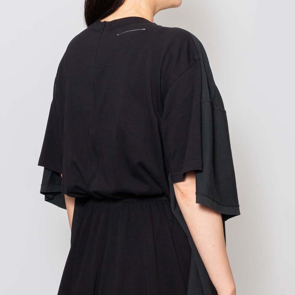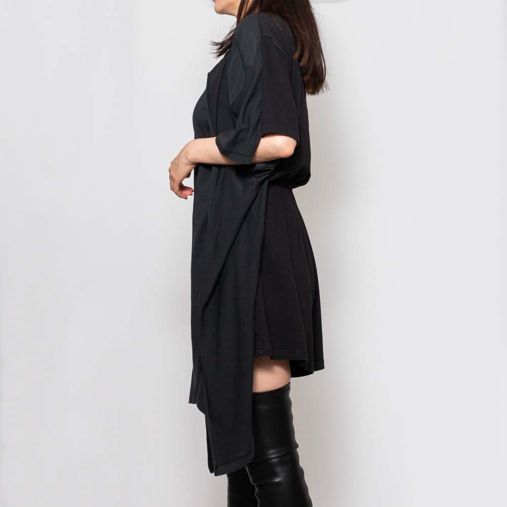 レイヤード部分は前後逆に着用することもでき、着るだけで洗練されたスタイリングが手に入ります。