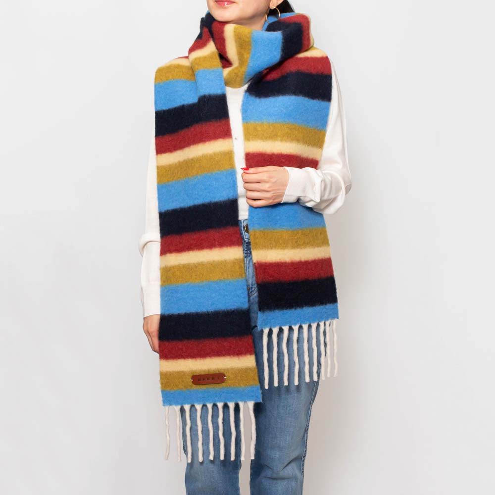 ストライプが華やかな雰囲気を纏った、フェルトウール地のマフラーが登場しました。