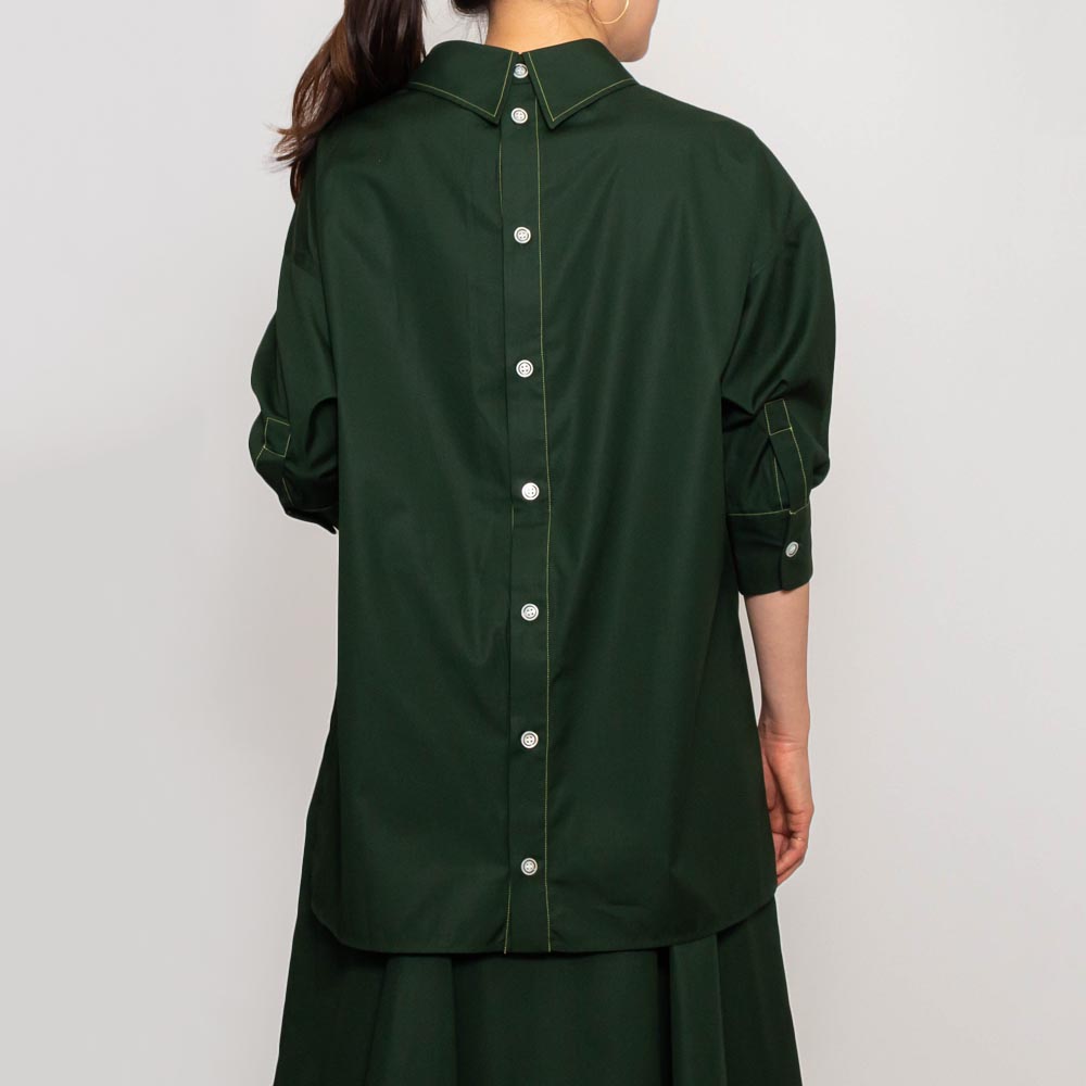 襟のデザインが後ろに施されたブラウス。