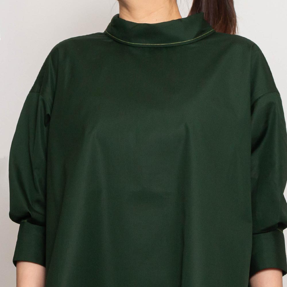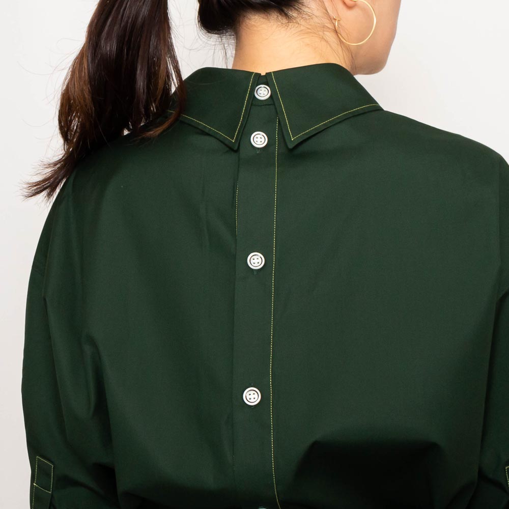ブラウスやスカート、ワンピースとコレクションでは欠かせないマテリアルのコットンポプリン生地で、上質感が漂う美しい風合いです。