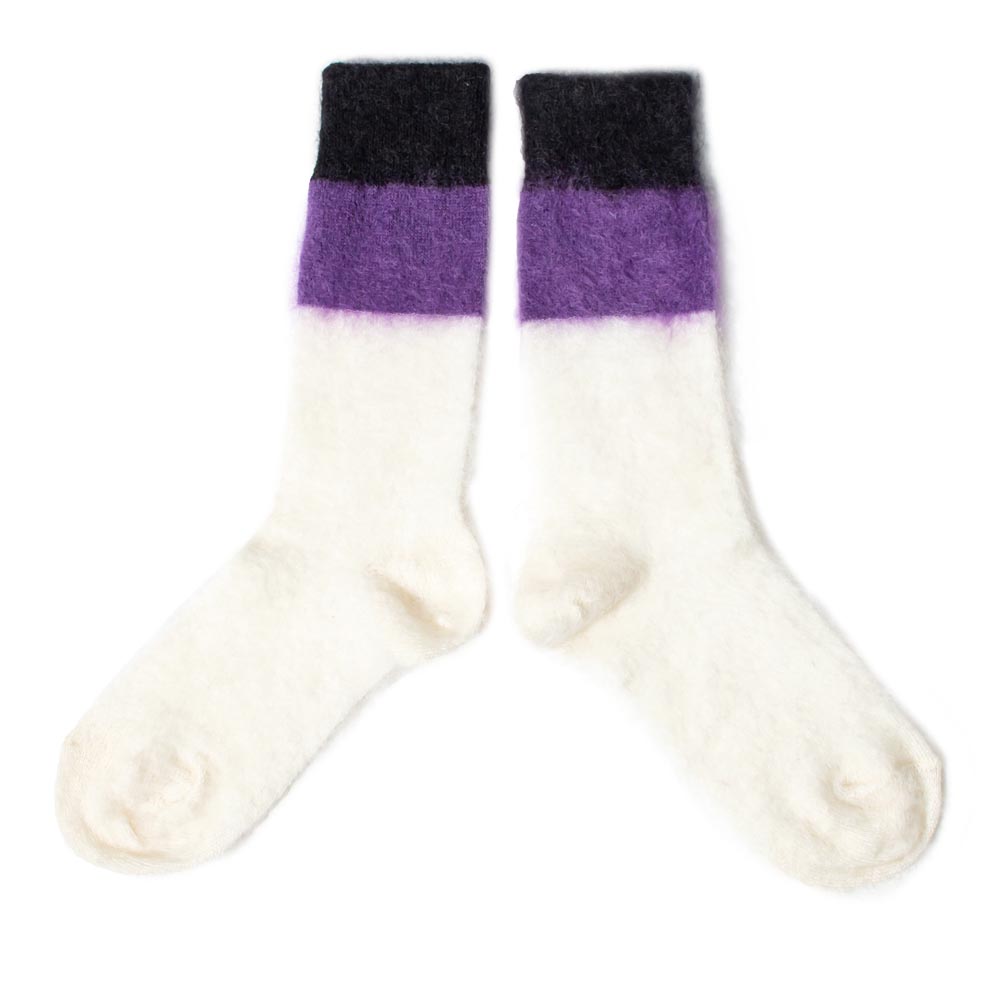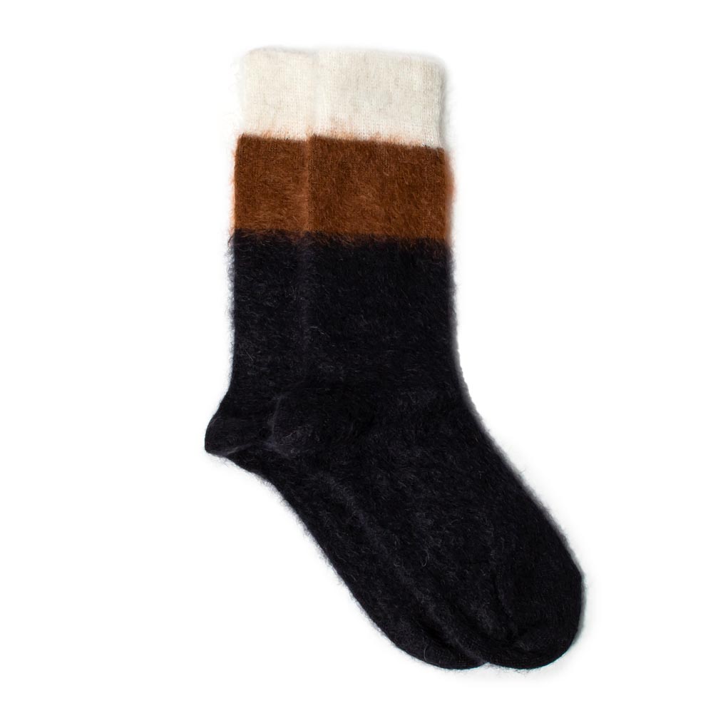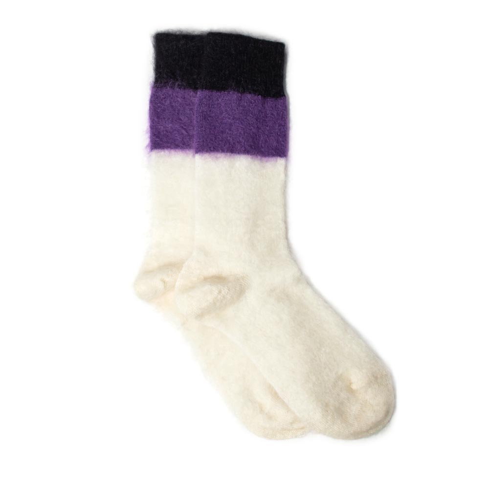 モヘア素材のふっくらとした素材とトリコロールカラーを組み合わせたスタイリッシュなソックスが入荷しました。