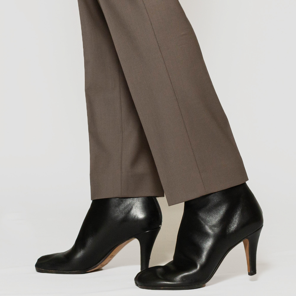 裾にかけて細くなっていく膝下のラインがとても綺麗なモデルで、無駄なゆとりのないすっきりとしたシルエットを演出。