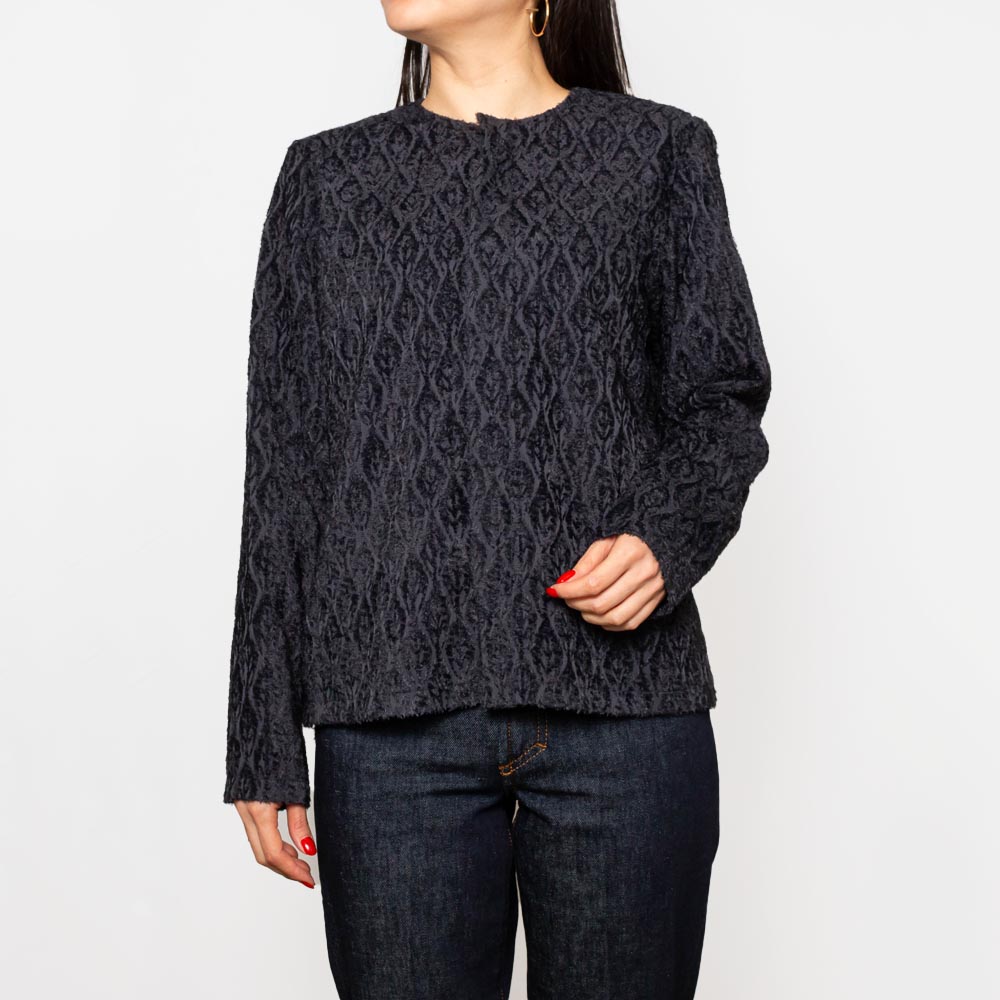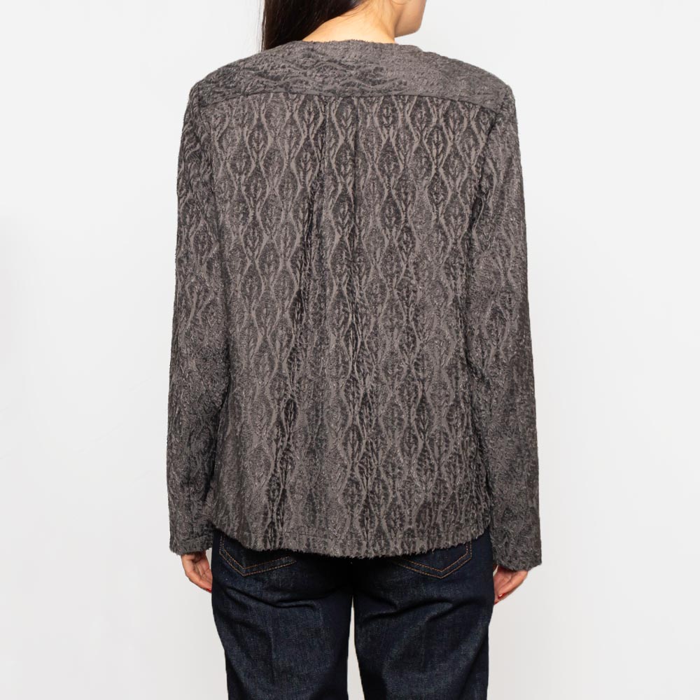 前身頃はスナップボタンでの開閉となっておりジャケットとしても着用できるデザインで、シンプルで美しい佇まいに仕上がりました。
