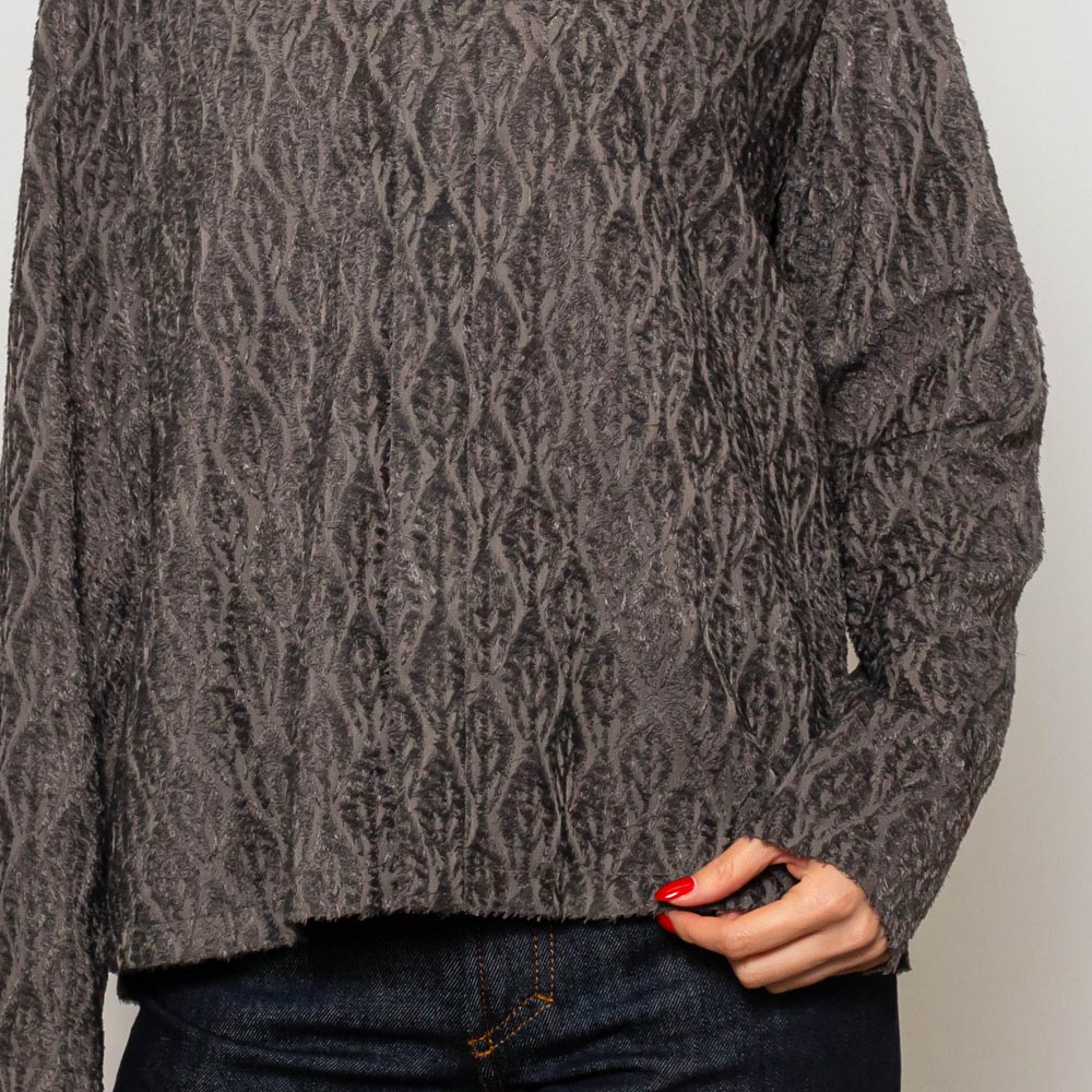 ポリエステル89%とトリアセテート11%のリーフモチーフのカットジャガード生地を使用。