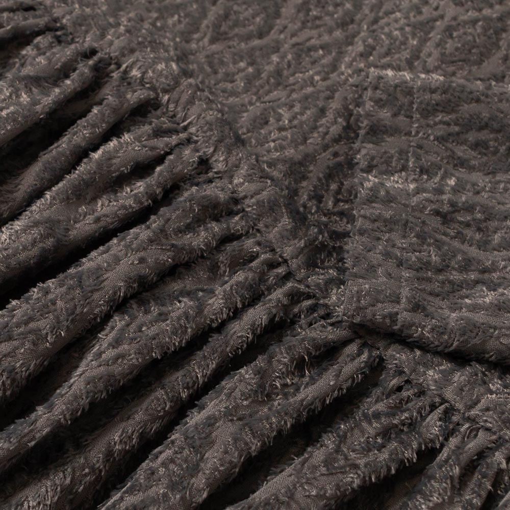 ポリエステル89%とトリアセテート11%のリーフモチーフのカットジャガード生地を使用しています。