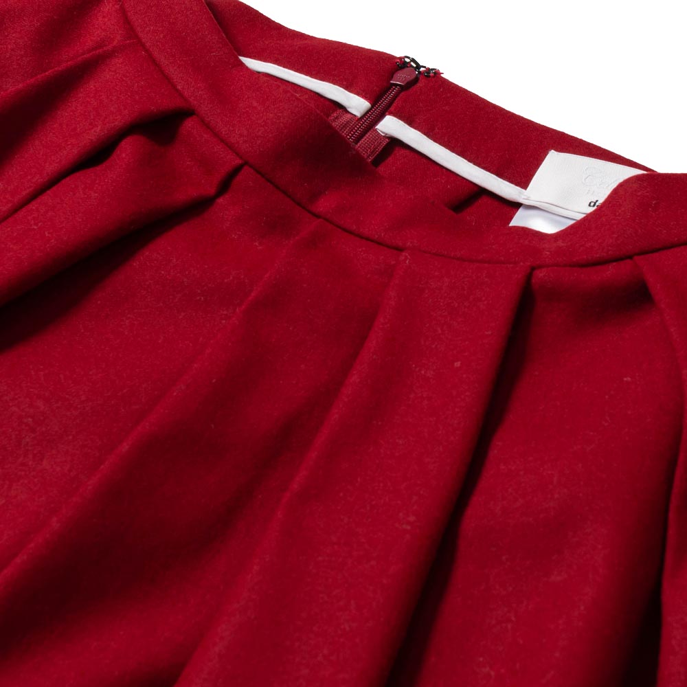 生地を贅沢に使用することでドレープを生み出し、巧みなタックプリーツの配置によりボリューム感が程良い塩梅に仕上がっています。