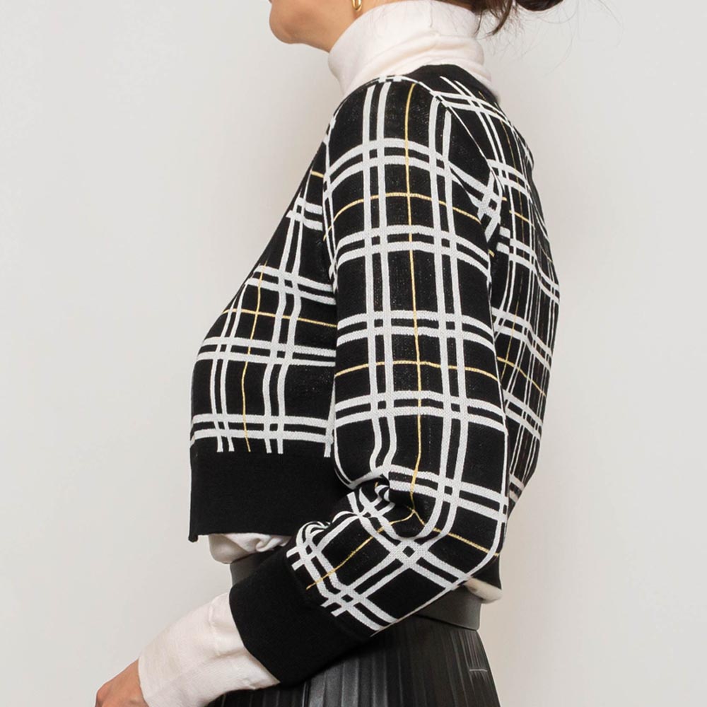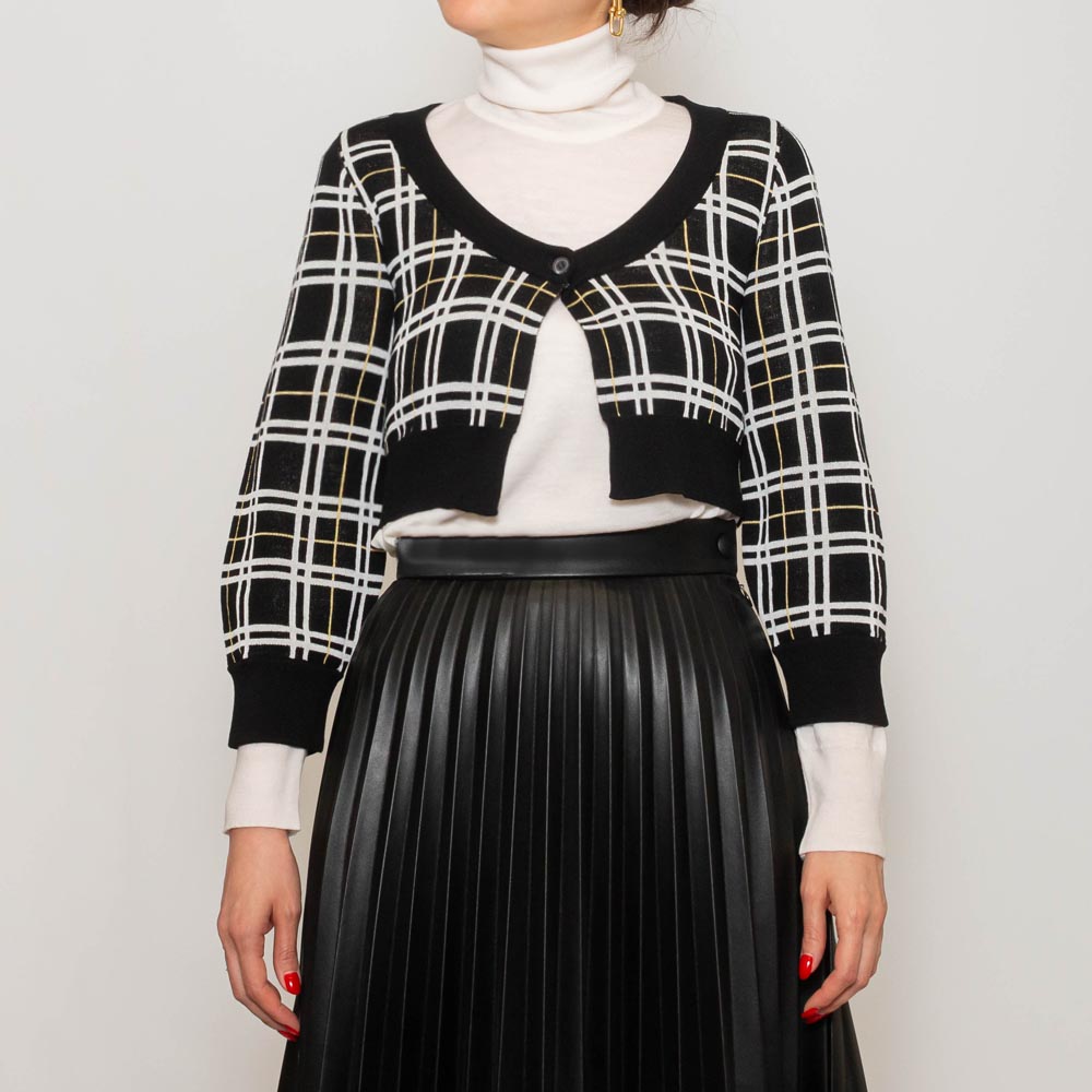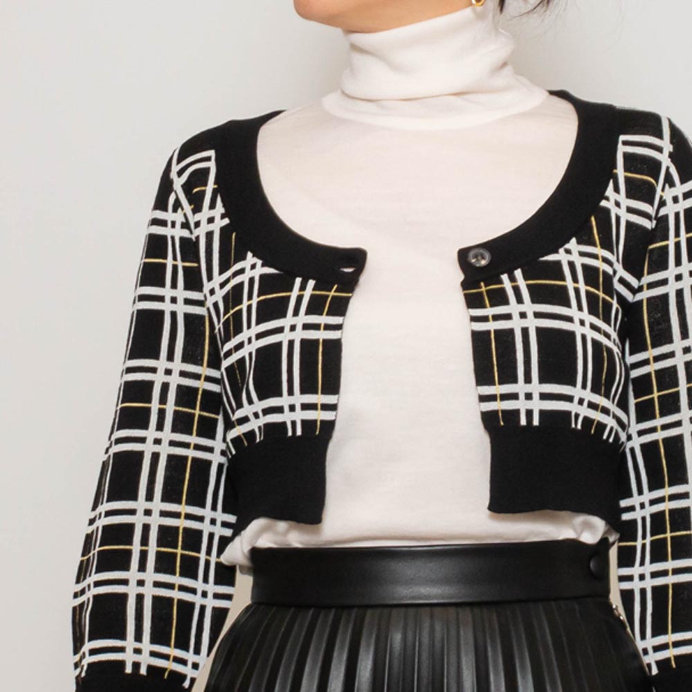 CDMD0328Q0/UFW526 ウールテクノチェック ショートカーディガン