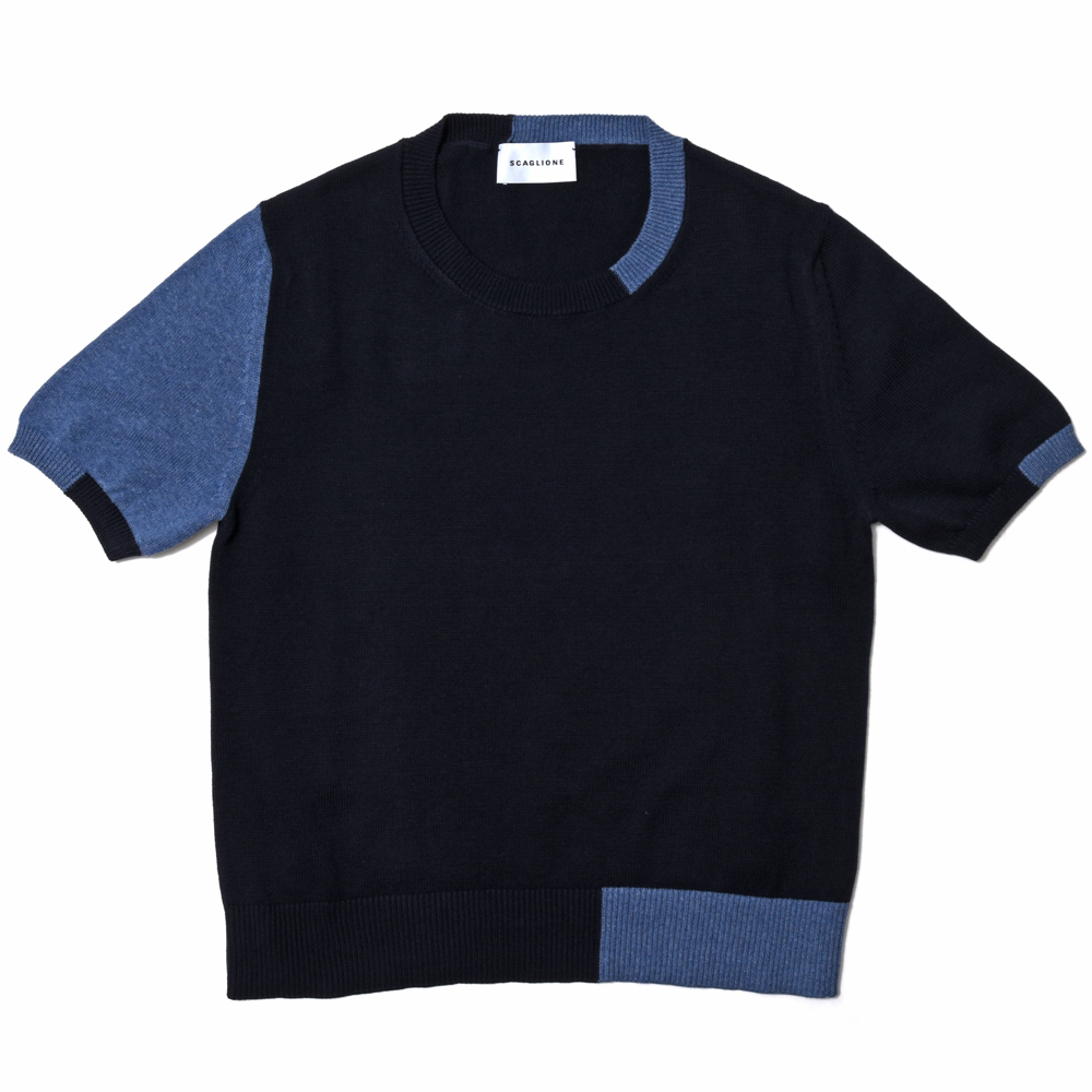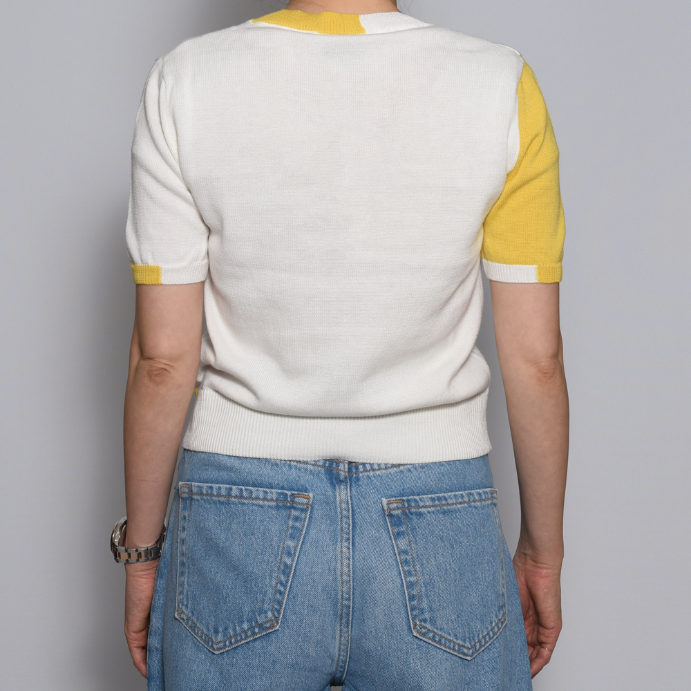 バイカラーのコントラストが映えるショートスリーブのニットがお目見え。