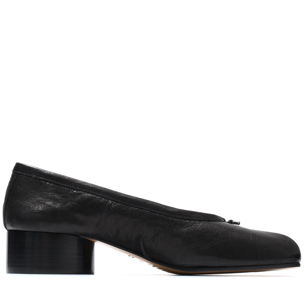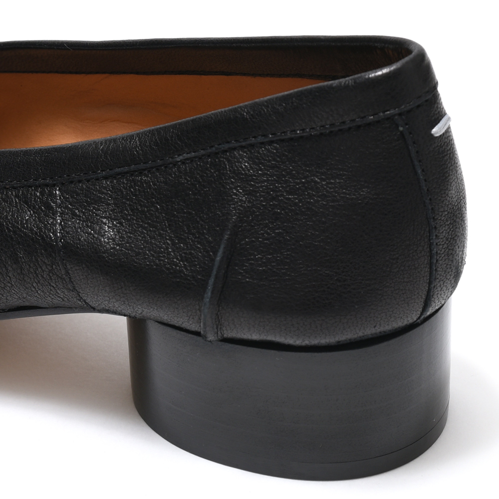 つま先が分かれたTabiシェイプで、フロントはレースディテールで飾られており、バックにはホワイトステッチが施されています。