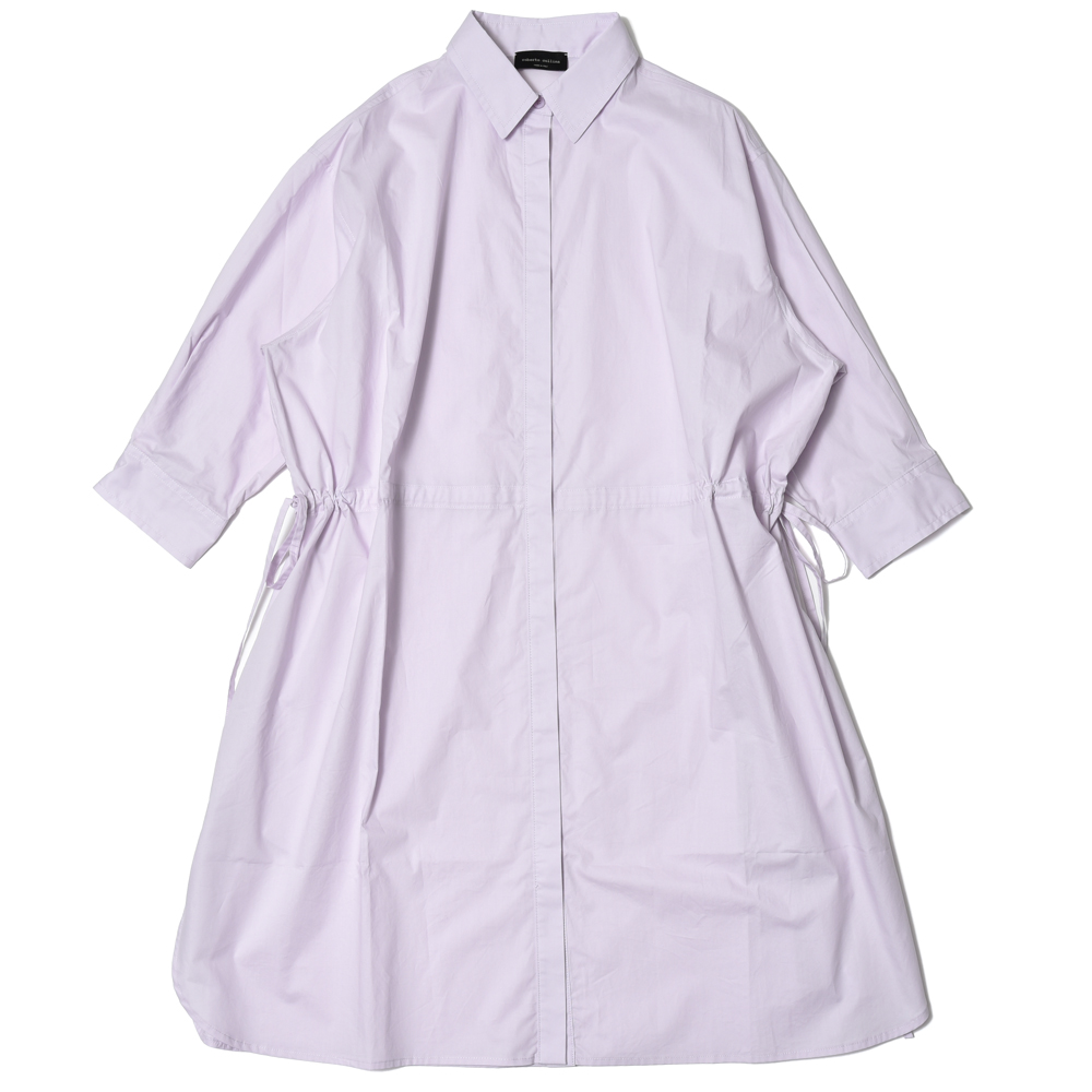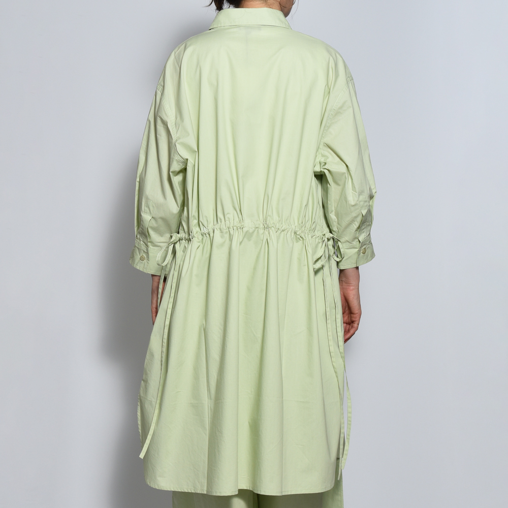 裾にかけて広がるAラインのシルエットとウエストを絞ることができるドローストリング仕様が優美な印象で、ラインにニュアンスと変化をつけることで女性らしさを引き立てます。