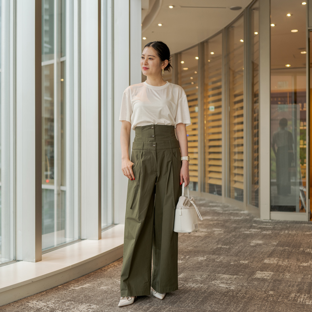 またセンタープレスを施すことで上品さが叶えられ、ハイウエストデザインと相まって絶大なスタイルアップが実現。
