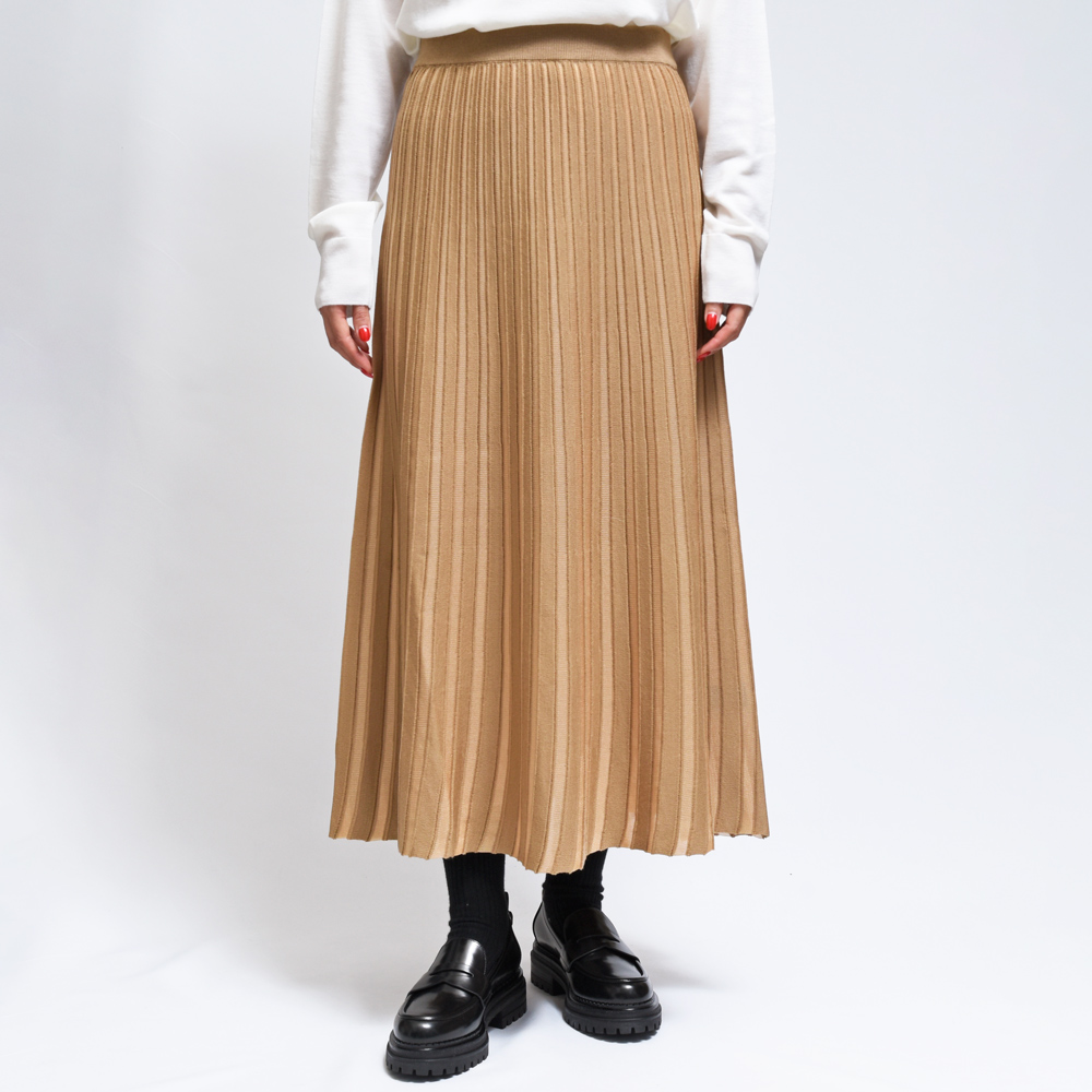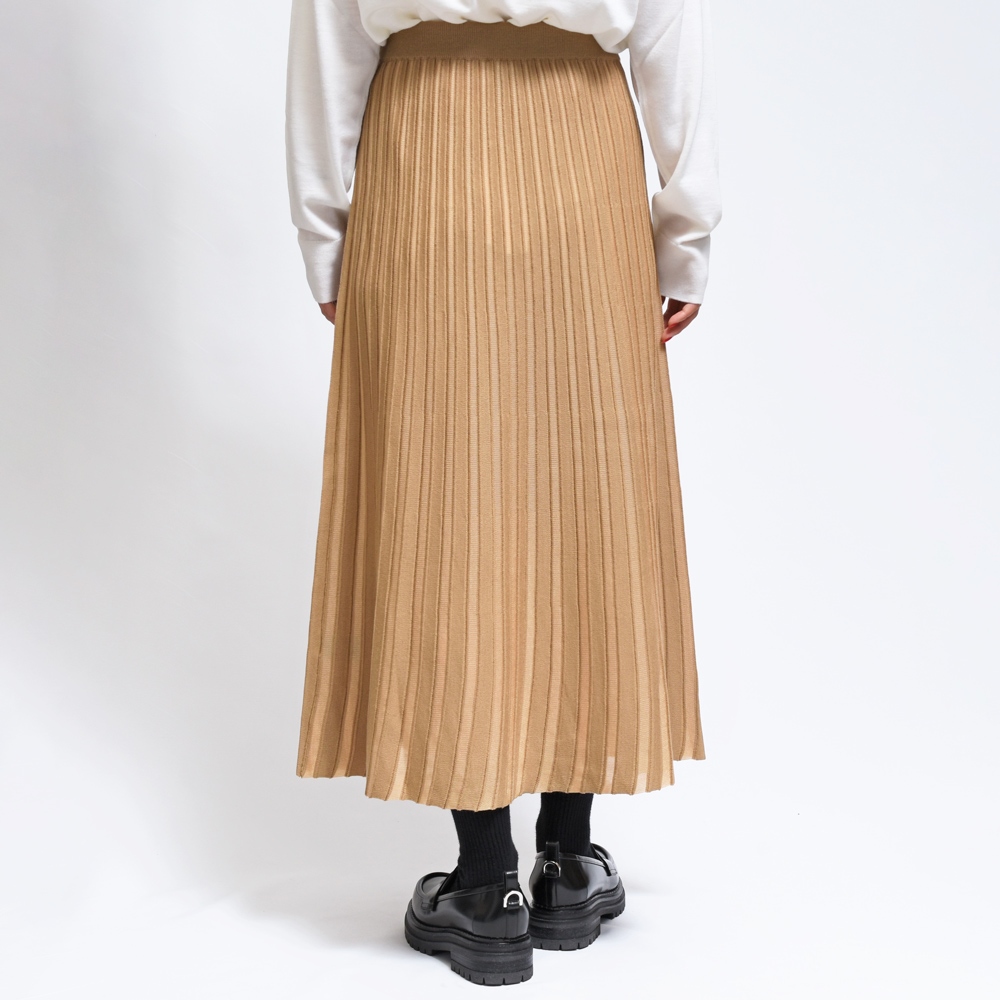 プレーンなニットスカートに比べ、立体感と動きのある見え方が特徴のプリーツ入りニットスカート、roberto collina(ロベルト コリーナ)らしい都会的でモダンなスタイルに仕上がっており、歩くごとに生地が舞い、優雅な印象を漂わせます。