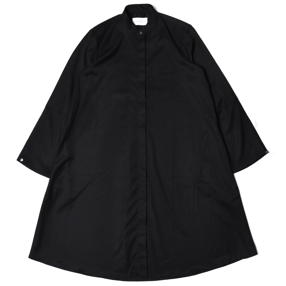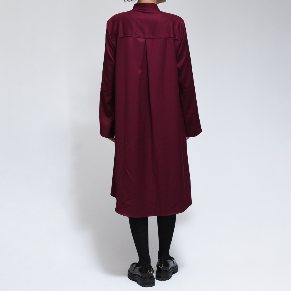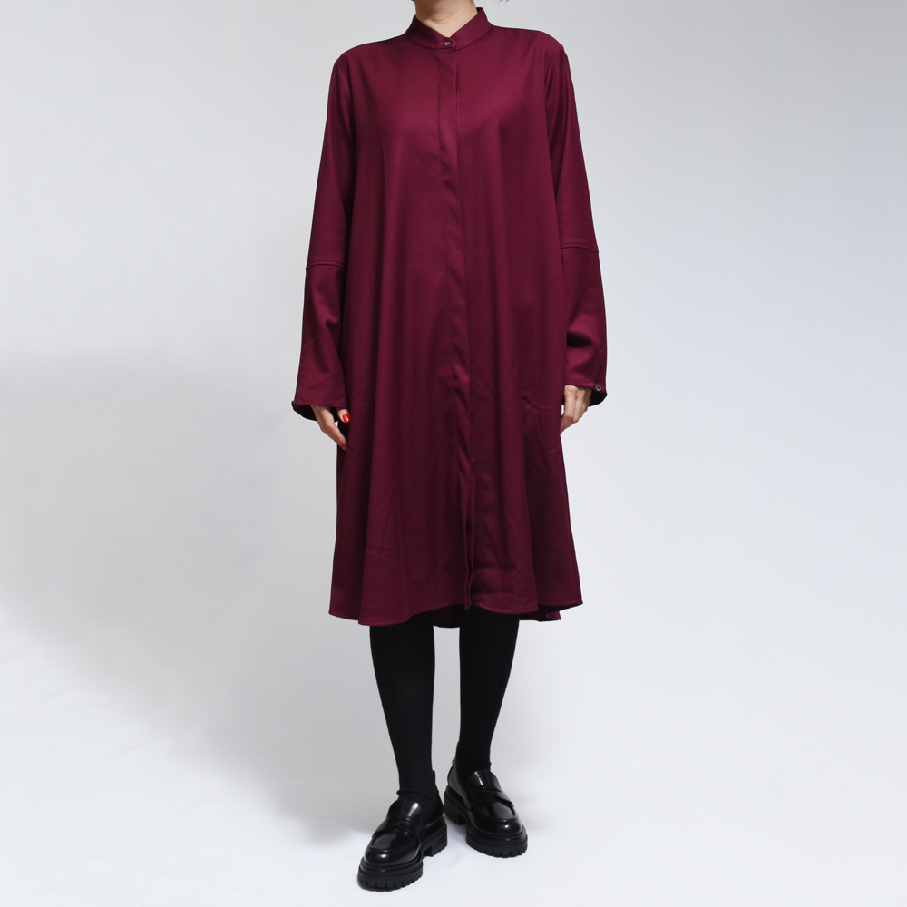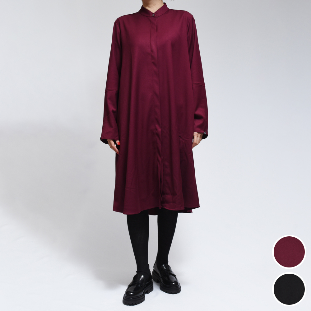 FLORE ウールライク フレアスリーブ バンドカラー シャツワンピース
