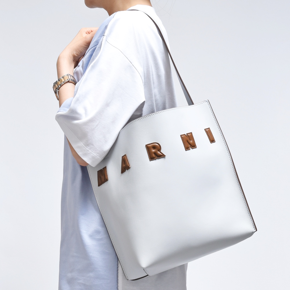 上質なカーフレザーとMARNIロゴのパフィーパッチというアイコニックなデザインで、カジュアルなスタイルに上質さをプラスしてくれるとても美しい仕上がりです。