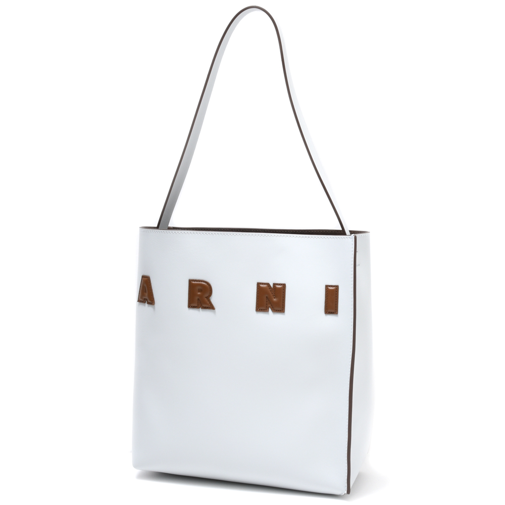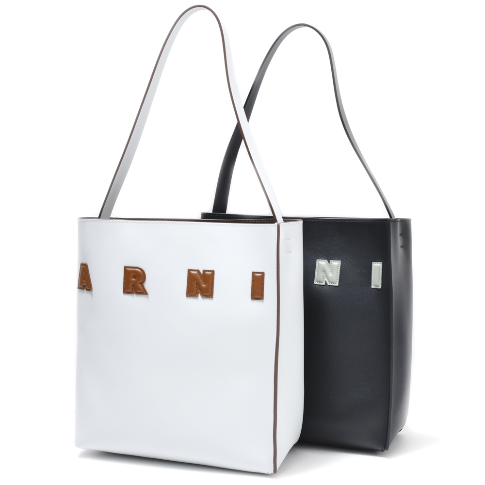 MARNI(マルニ)定番デザインである、2枚のレザーでバッグ本体を表現するMUSEOミュゼオ、こちらはシングルトップハンドルのHOBOホーボーバッグタイプです。