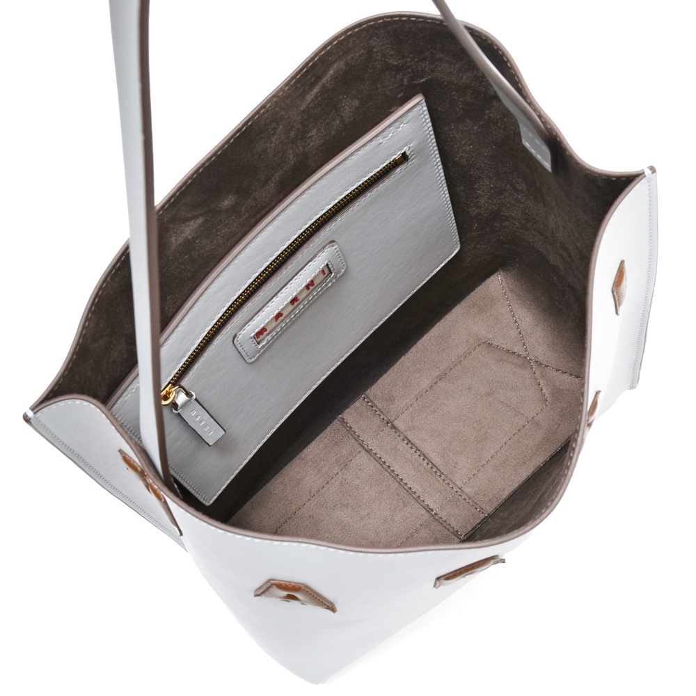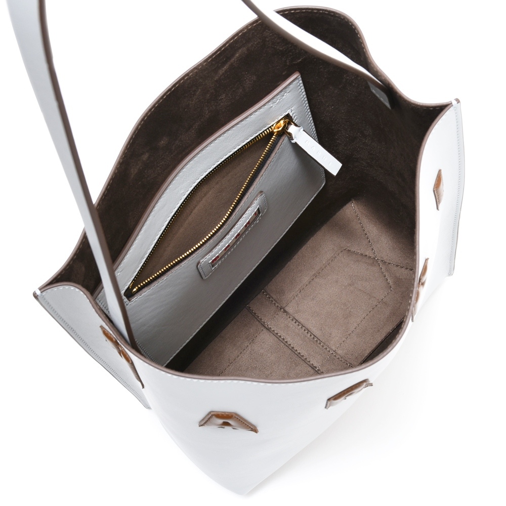 ストラップは内側に縫い付け、スムースなカーブのラインを損なわないよう計算されているMARNIならではの繊細さを感じさせる仕上がりになっています。