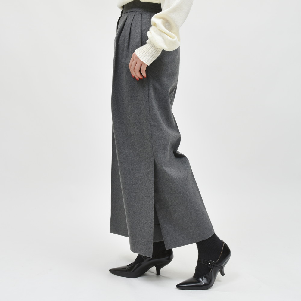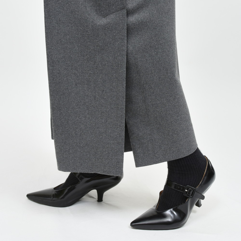 着用した時のバランスを意識して設計されたデザインは、クロップド丈で足元にベンツスリットを施すことで、ワイドシルエットを軽やかに演出しています。
