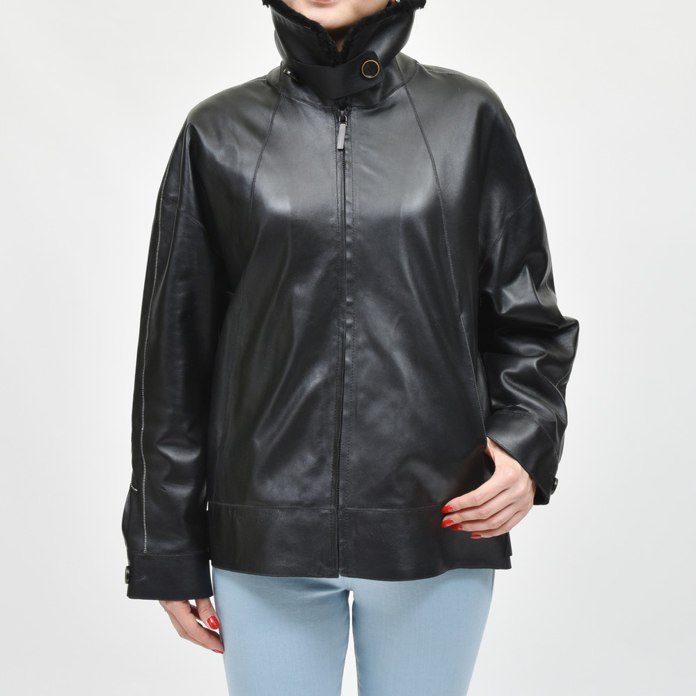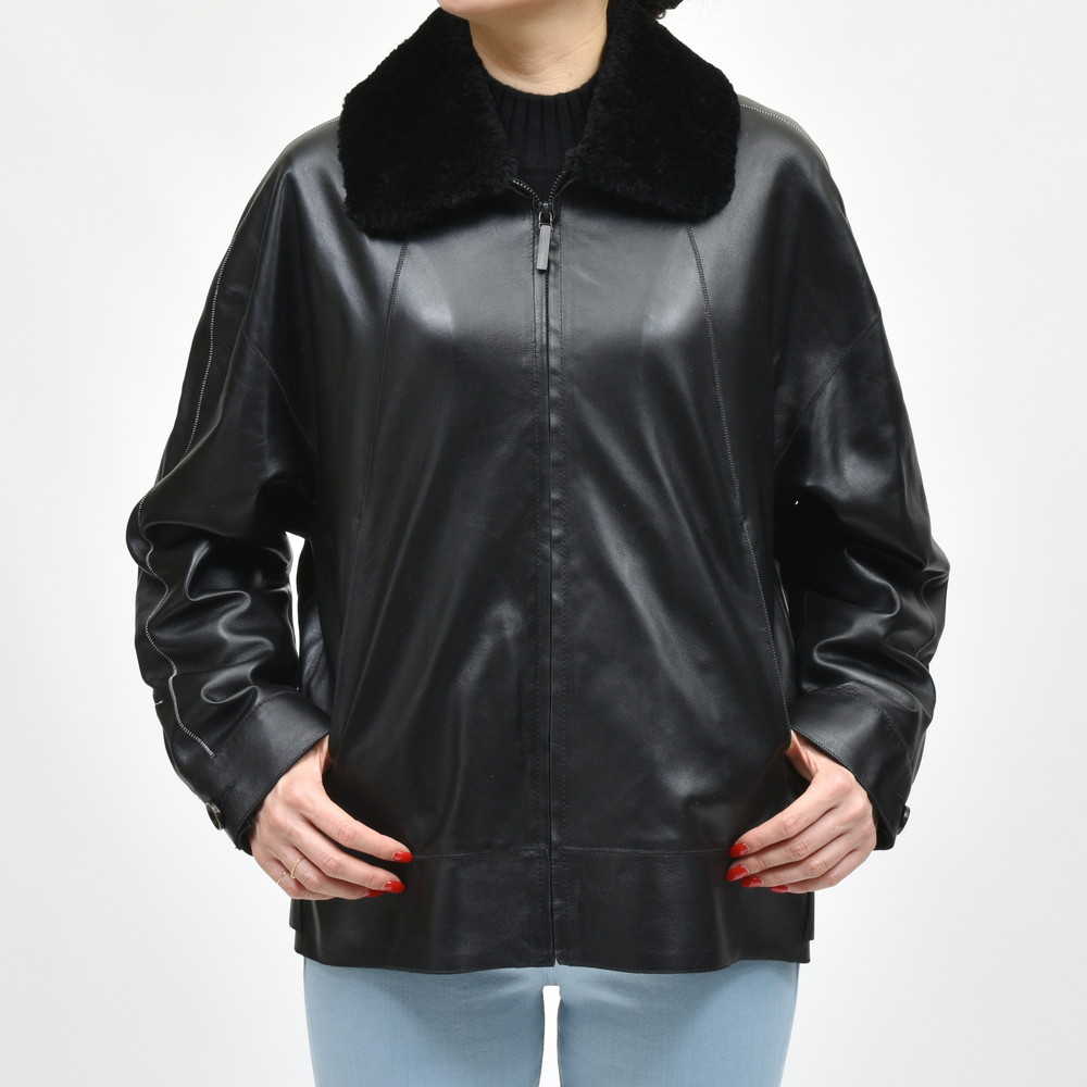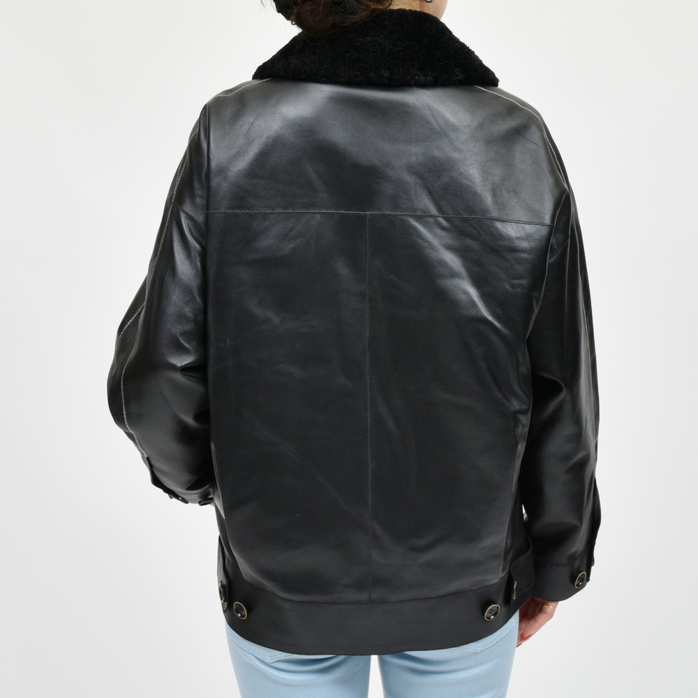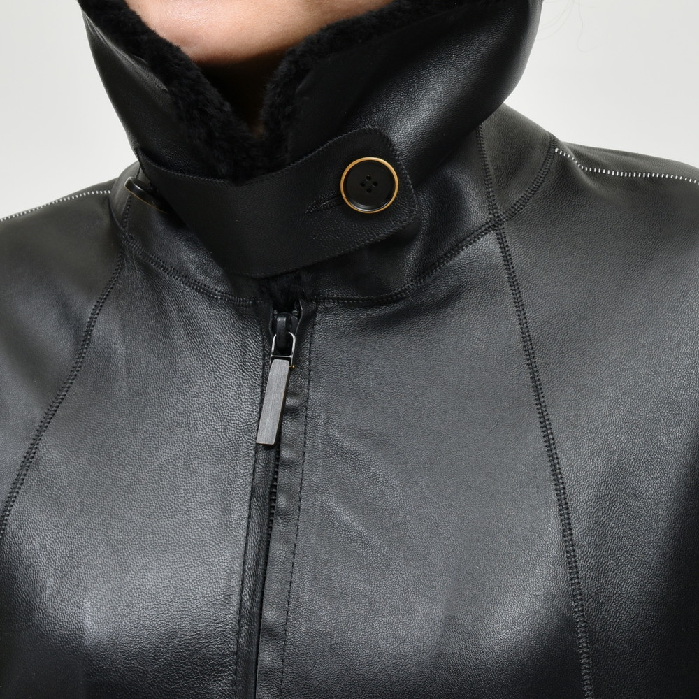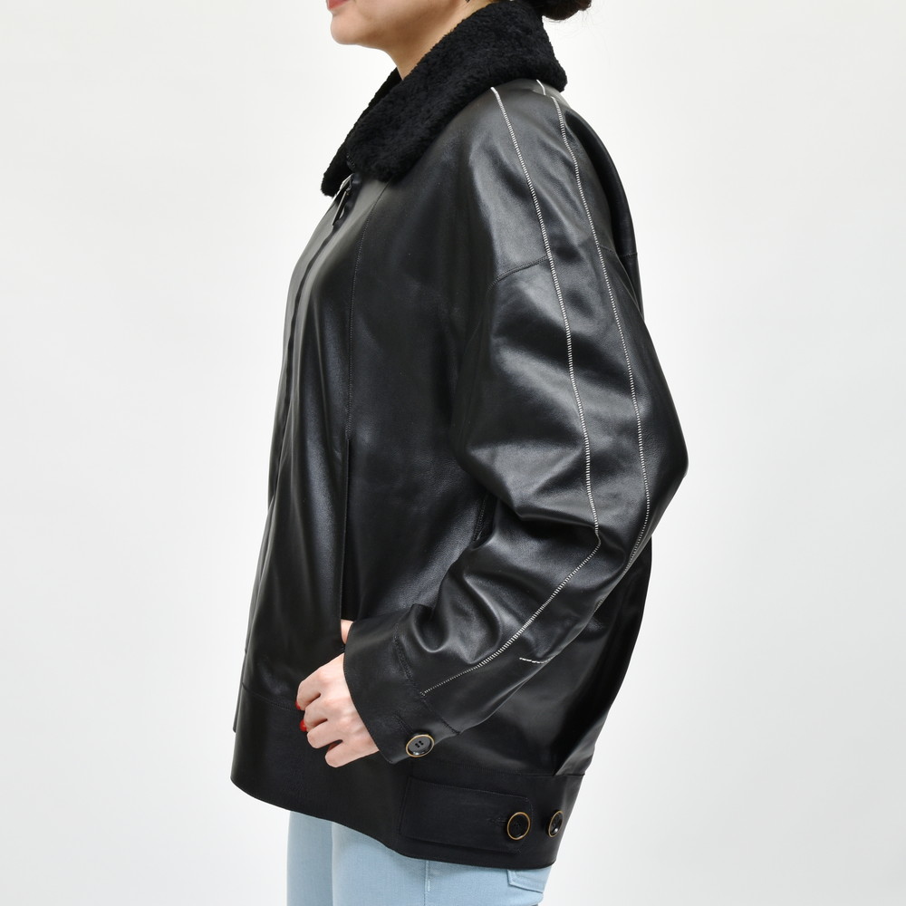 ボディは上質なラムナッパレザー、カラー部分はムートンボアに切り替えたマスキュリンなショートブルゾンです。