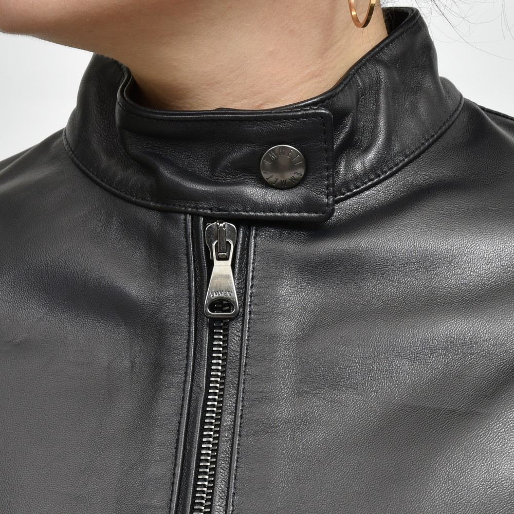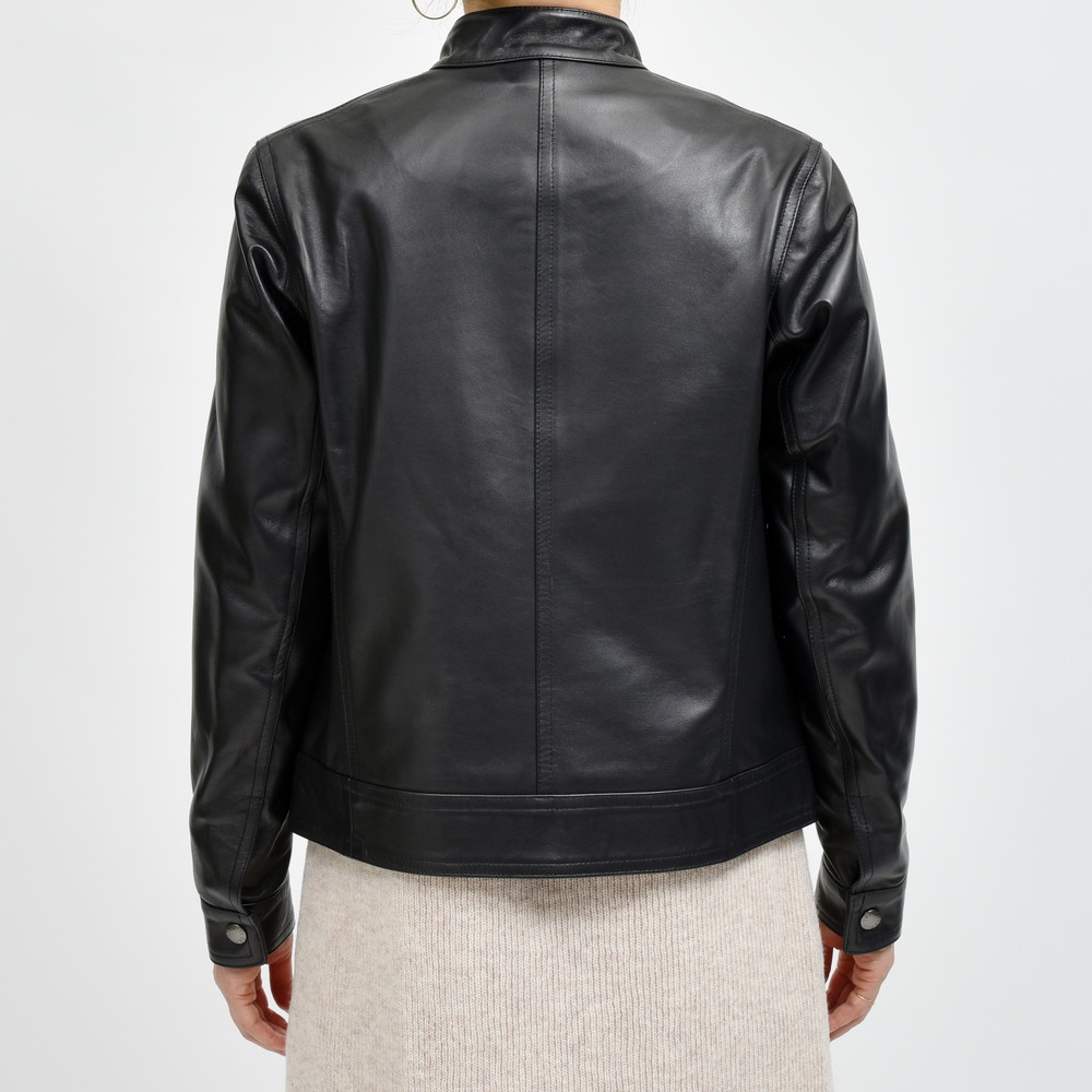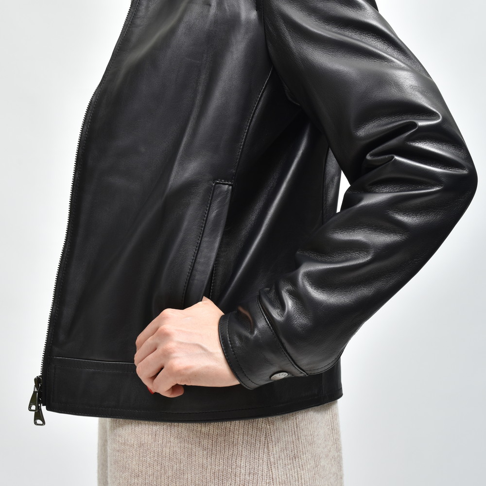 スタンダードなライダースデザインですが、EMMETIらしく上品で洗練された印象に整えられており、様々なスタイルに合わせられる汎用性を備えています。