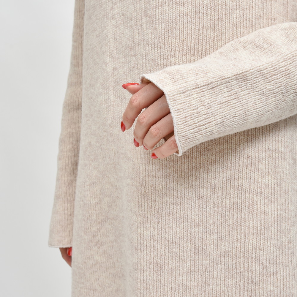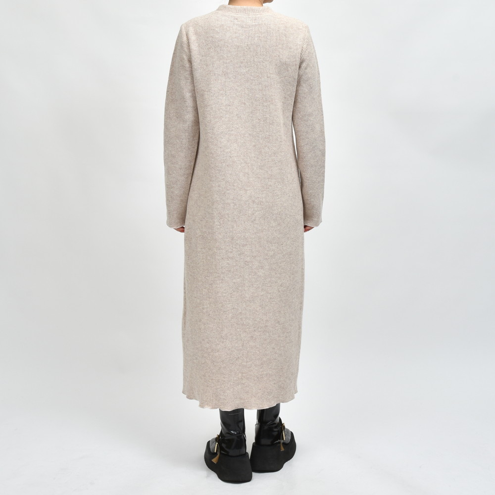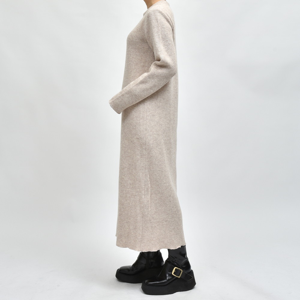 成型性が高く、型崩れしにくいよう裏面にフィルムをセットしたボンディングニットを使用、それなりのウェイト感になるニットワンピースですが、着用時に重さを感じないようデザインされています。