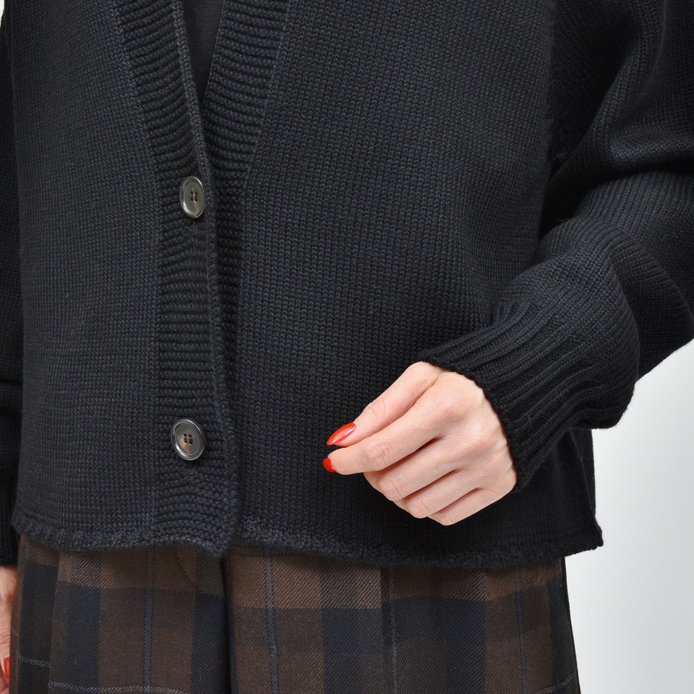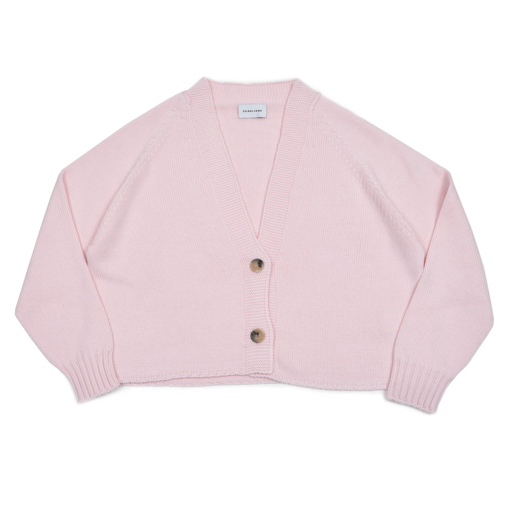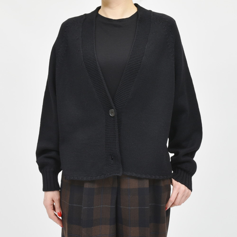 SCAGLIONE(スカリオーネ)らしい上質さと柔らかさを感じさせるミドルゲージニットカーディガン、裾リブ無しのクロップドレングスで、シンプルながらトレンド感ある仕上がりになってます。