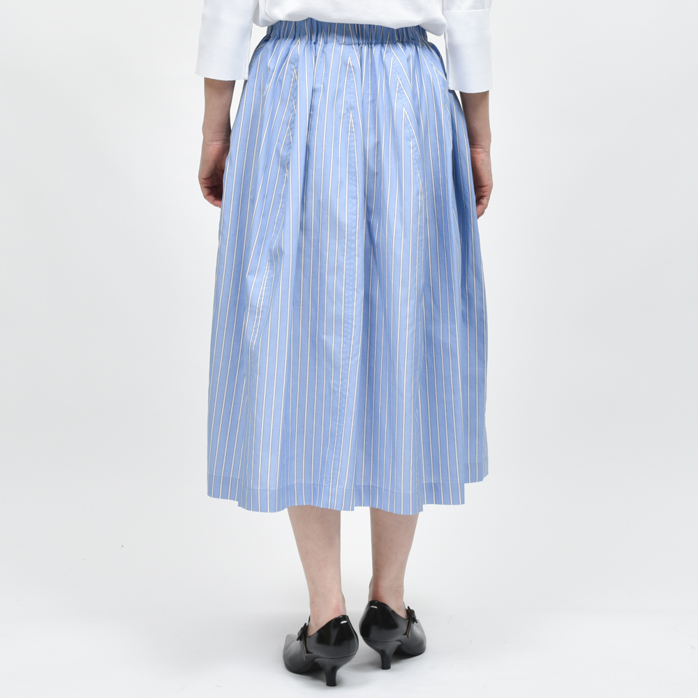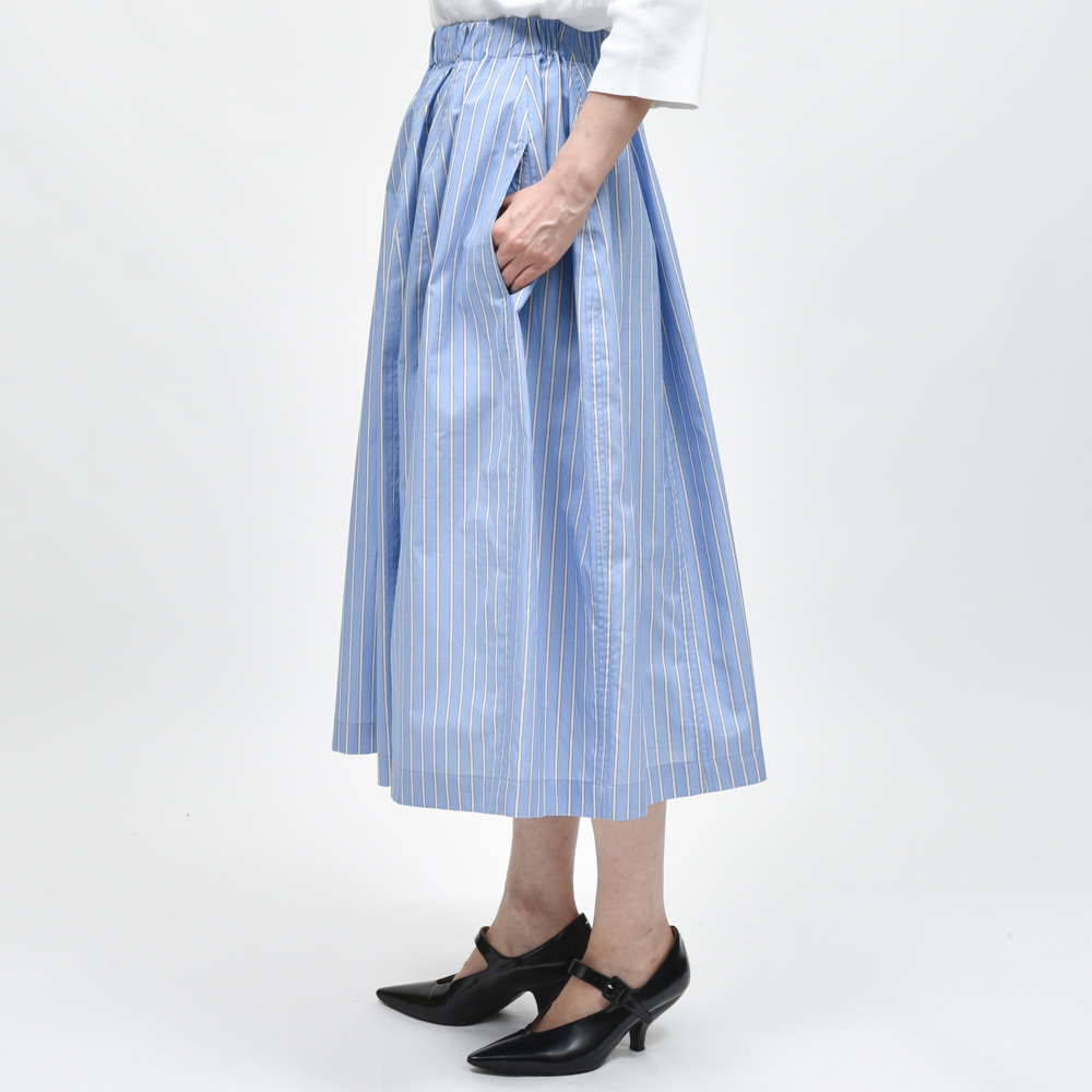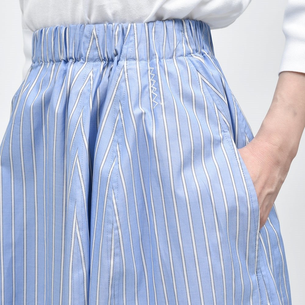 コットンポプリン素材のアウトラインストライプ、シルエットが感じさせる優雅さとコレクションブランドならではのモード感が巧みにミックスされており、シンプルなスタイリングであればあるほど華やぎをもたらしてくれるはずです。