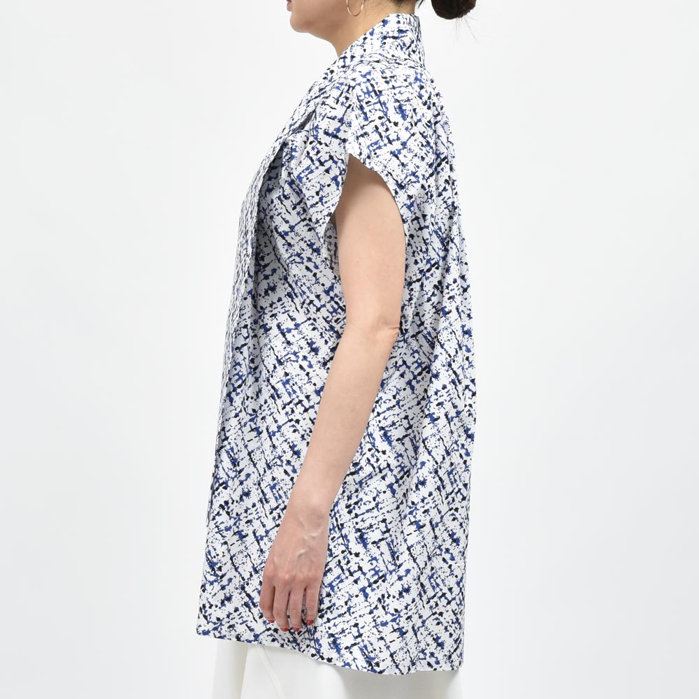 同ブランドらしさ溢れる総柄プリントの一着、ブルーとホワイトの色合いが清涼感があり爽やかなムードとオリジナリティをバランス良く演出してくれる存在に仕上がっています。