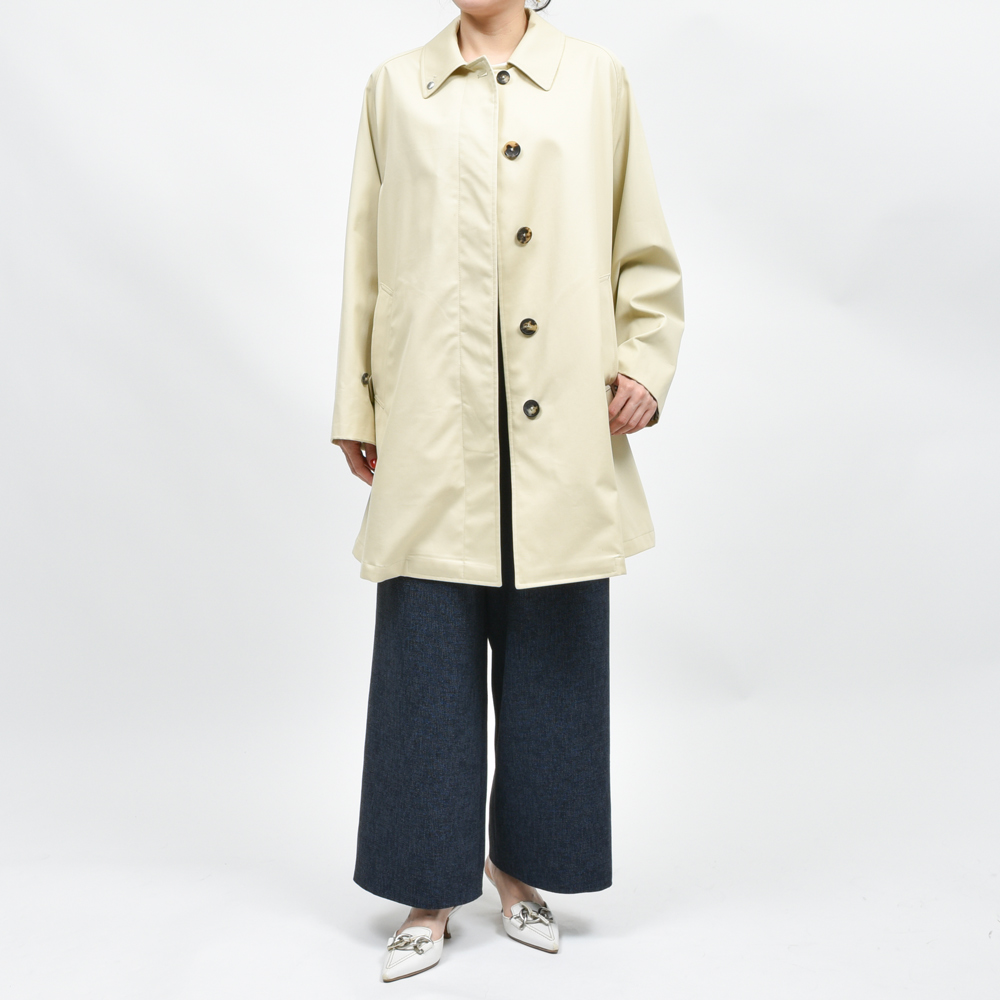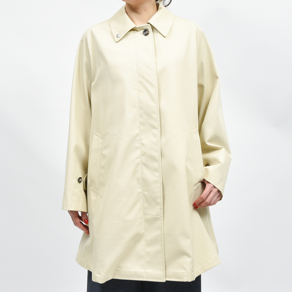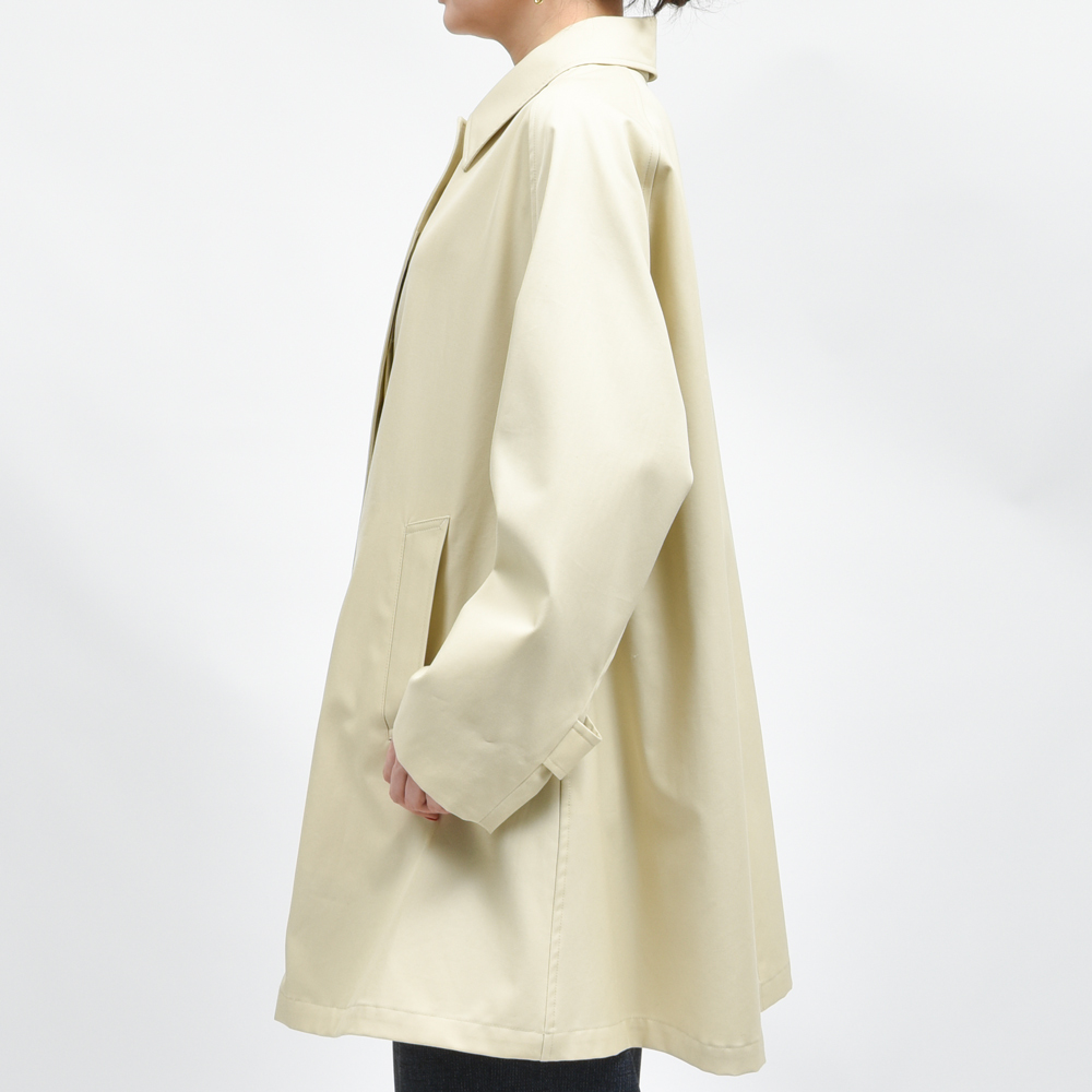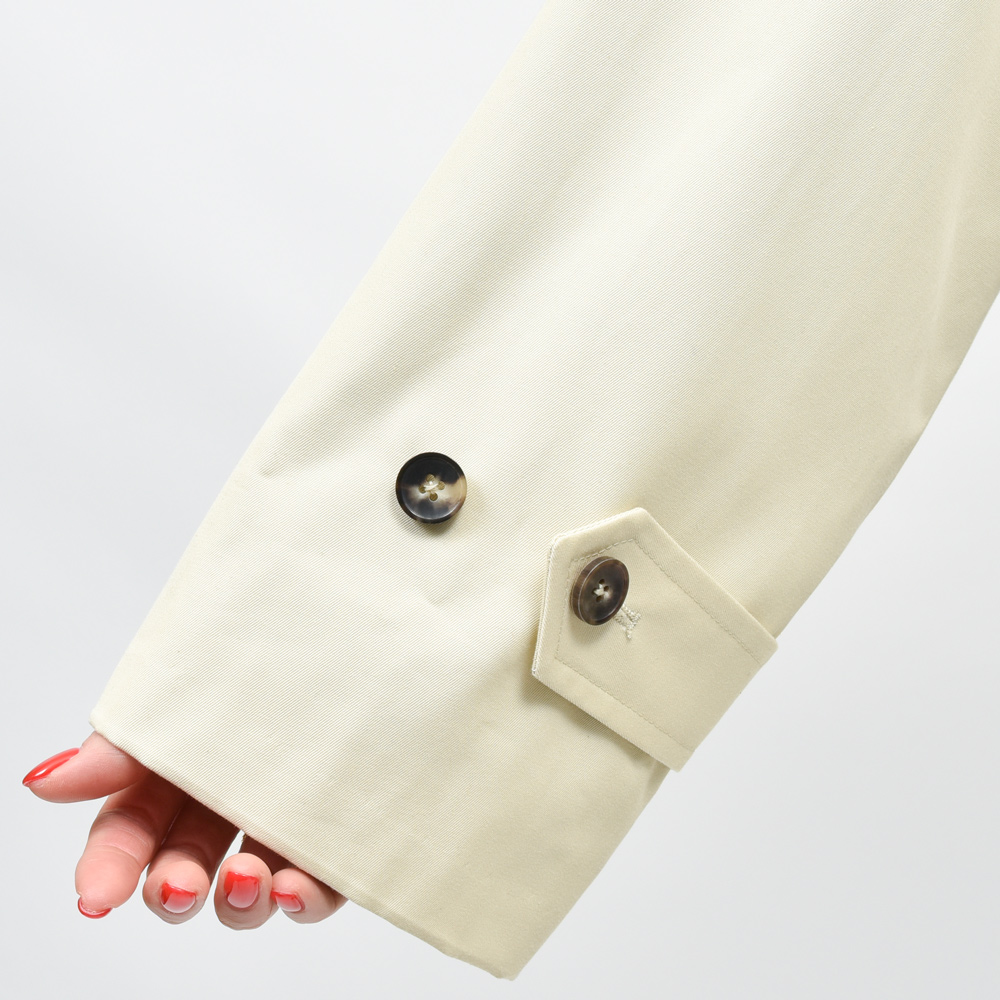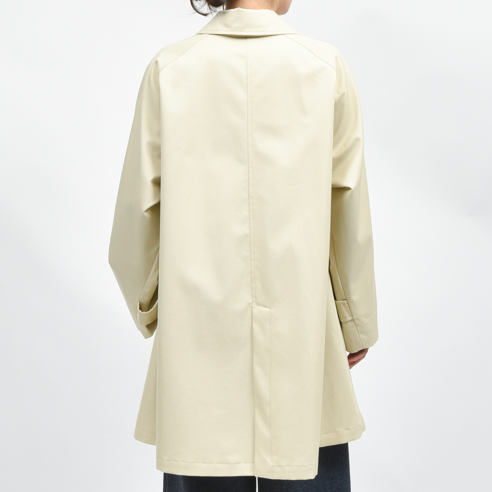 着丈はショート丈にすることでスプリングコートらしい軽快な雰囲気に。肩はラグランの仕様にすることで全体的にスッとした落ち感を表現。シンプルながらも気品あふれる一着に仕上がっています。