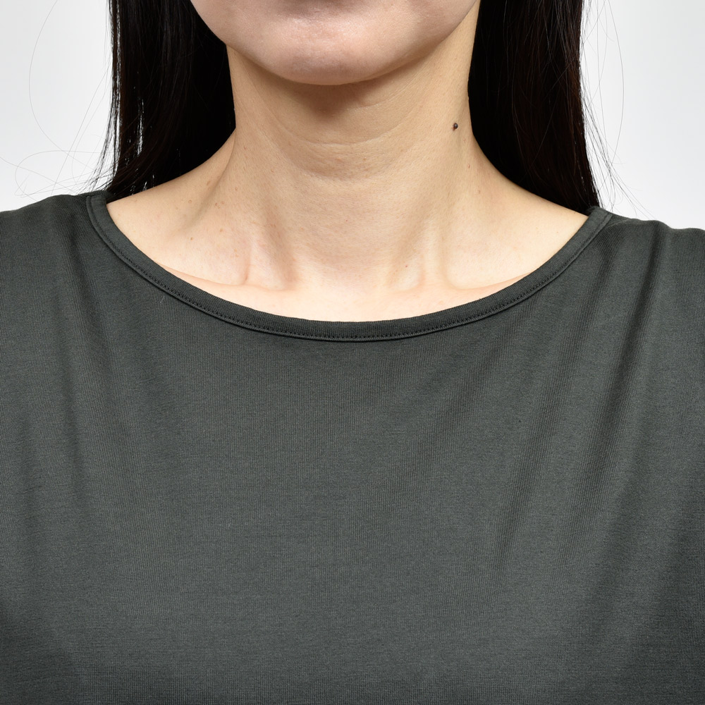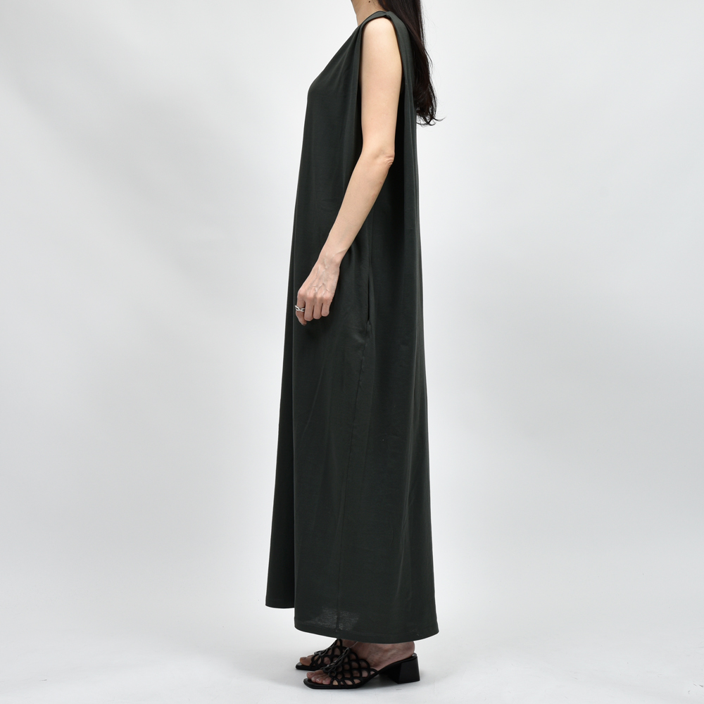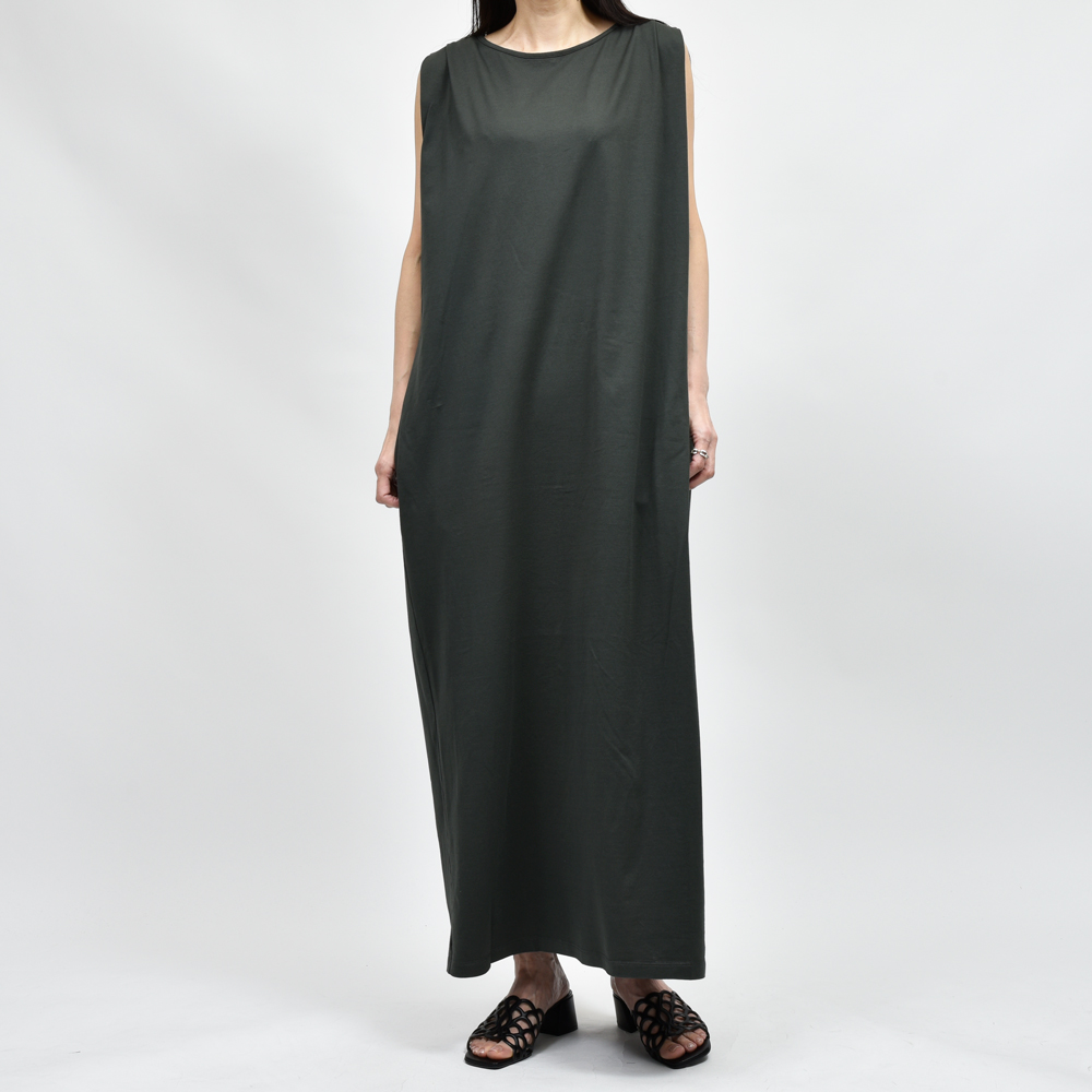 肌の露出を抑えたノースリーブのデザインや立体感のあるフォルム、シルエットへのこだわりが沢山詰まった名品で、ラフな中にもモード感をプラスしています。
