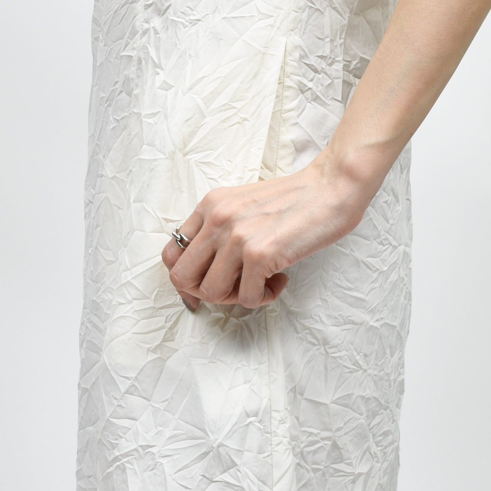 AMBELL(アンベル)らしい生地チョイスとなっていまして、洗いをかけたタフタ生地にシワ加工を施したものを採用しています。