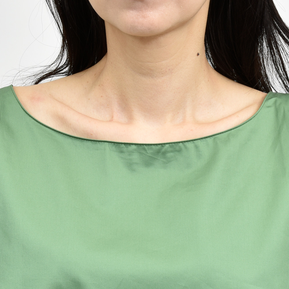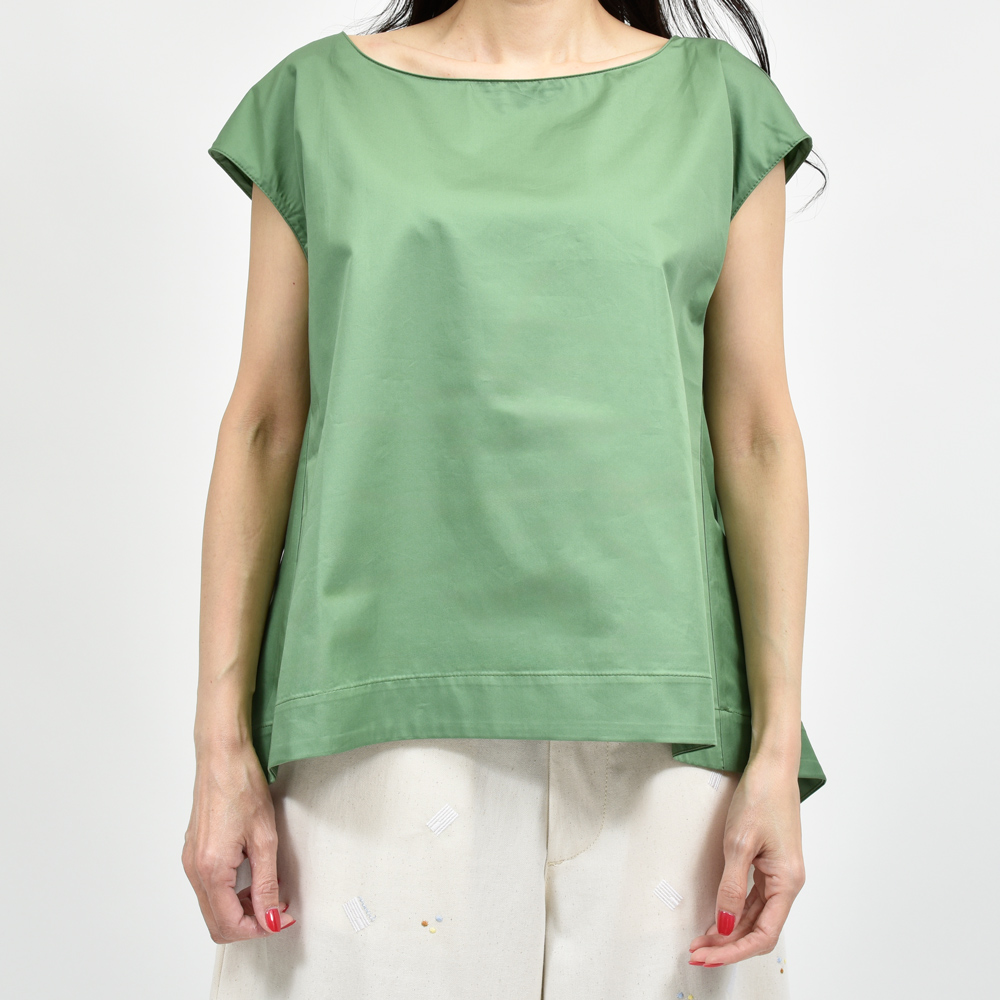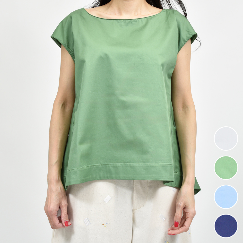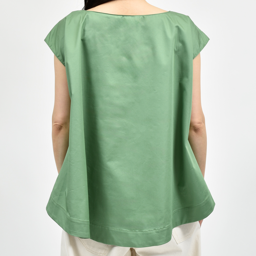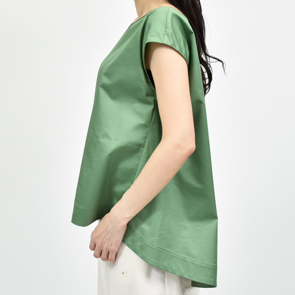 コンパクトな肩周りと絶妙な丈感でシンプルで洗練された印象に。ハリ感のあるコットン素材が清涼感ときちんと感を両立し夏の装いをクリーンに引き立ててくれます。