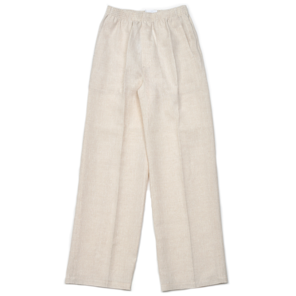 シンプル、快適、美しいという3つをキーワードに制作されているだけあり、風合いやシルエット、着心地が魅力的なこちらのリネン素材のパンツ。