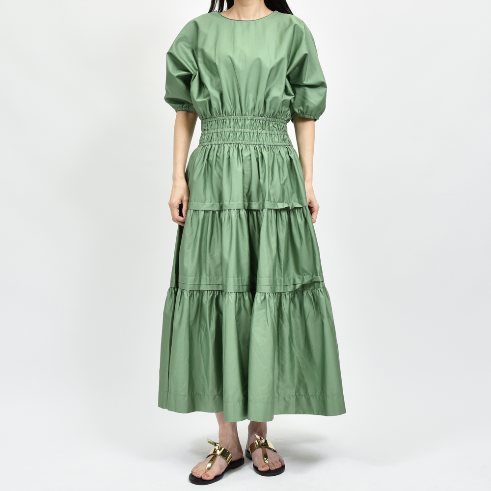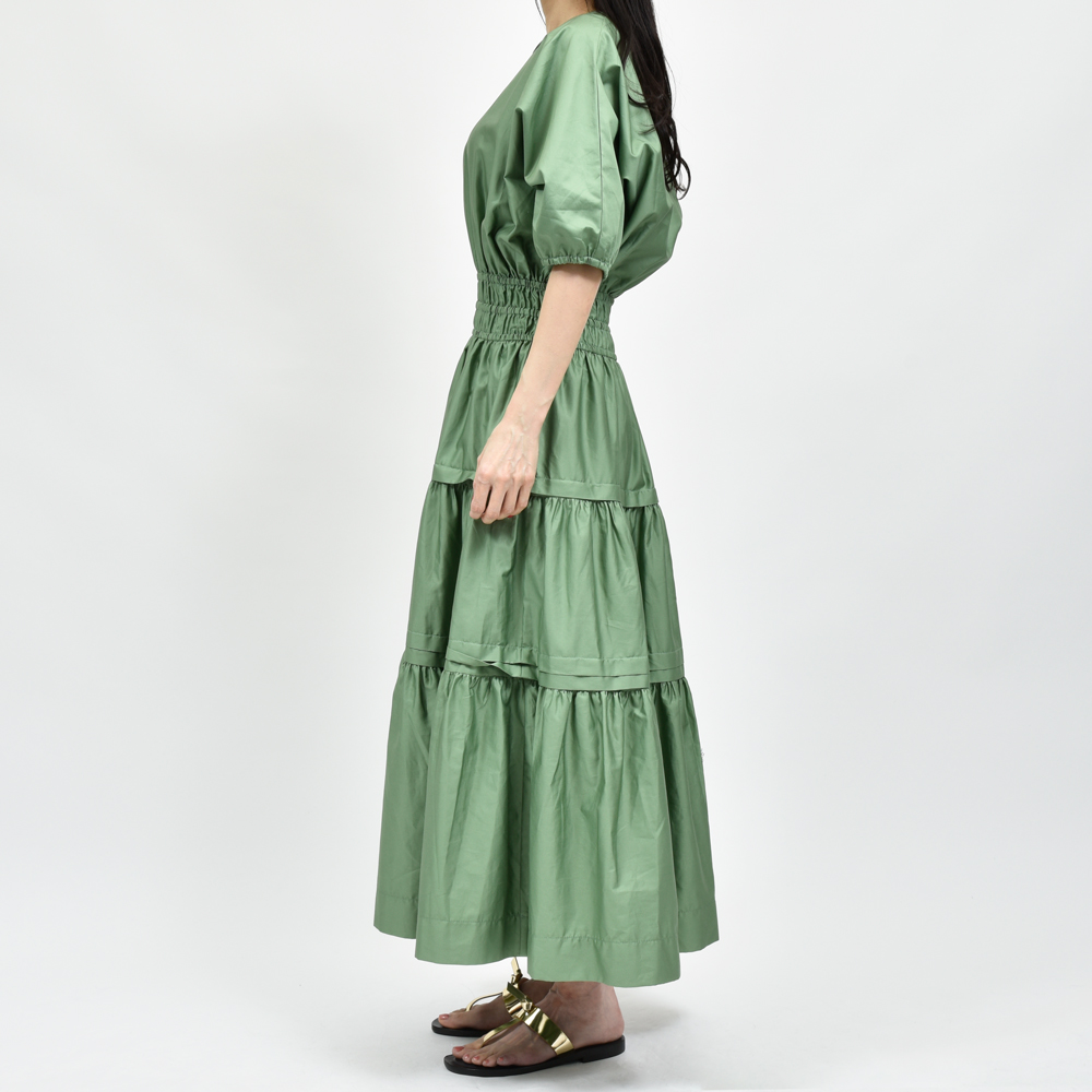 たっぷりと寄せたギャザーの立体感と揺れ感が魅力のワンピース。