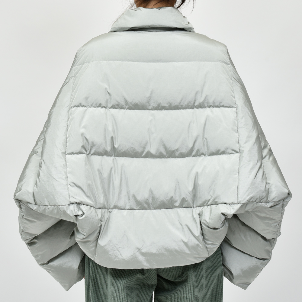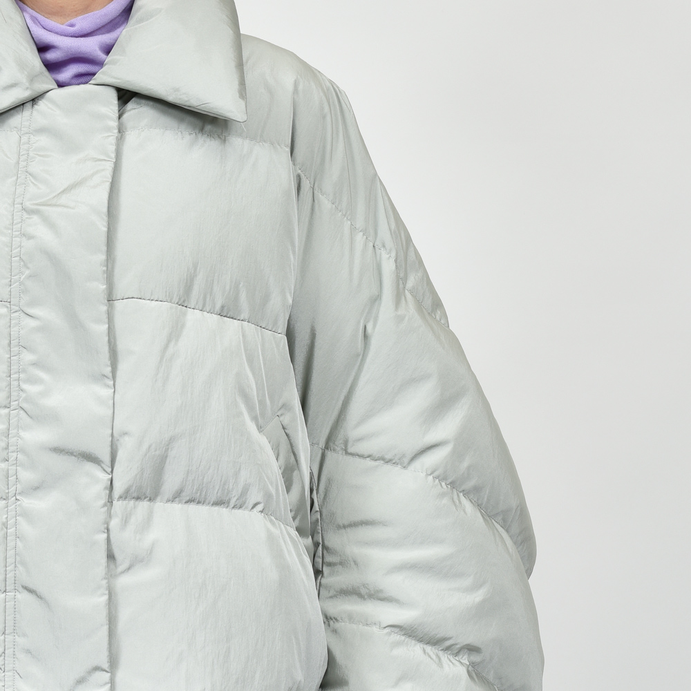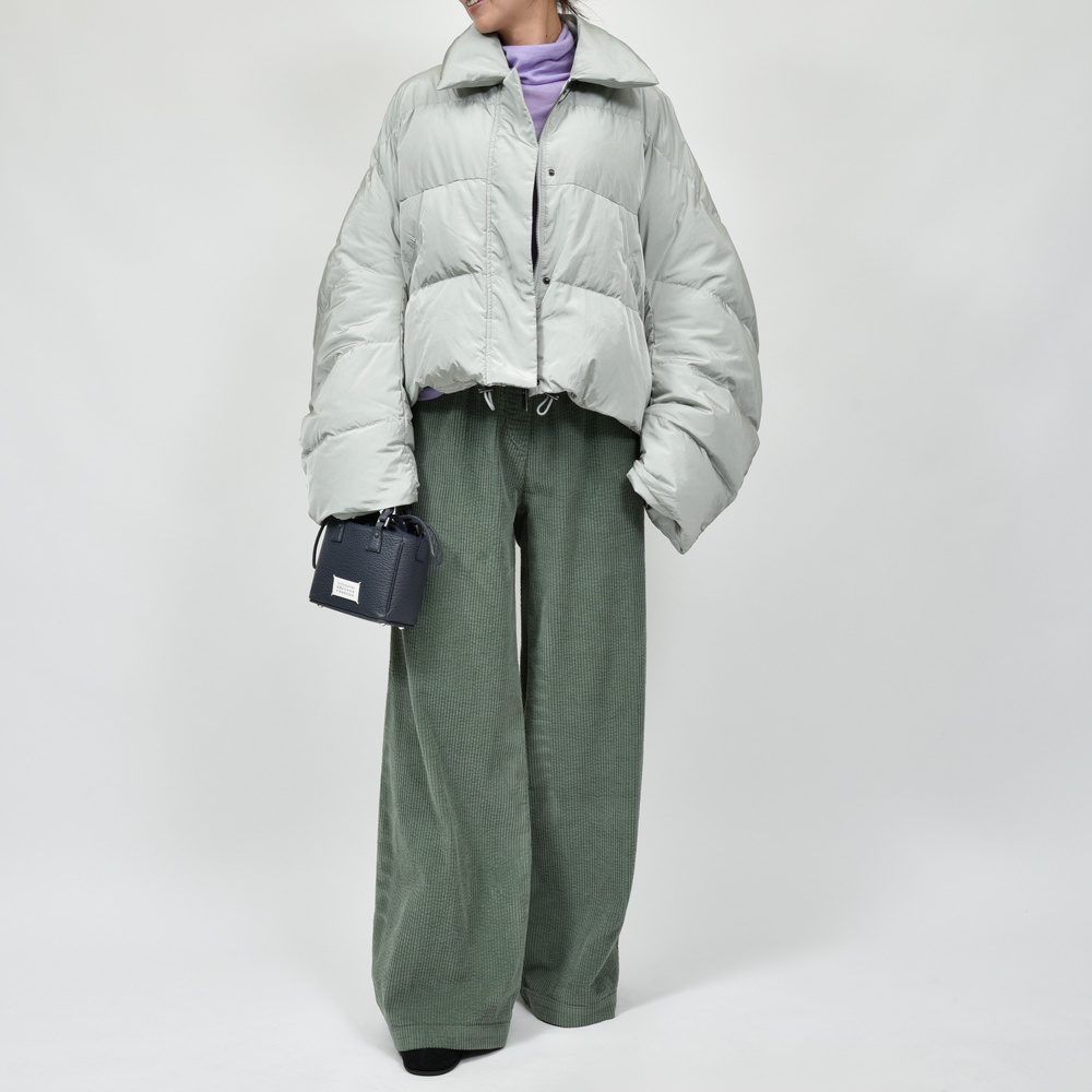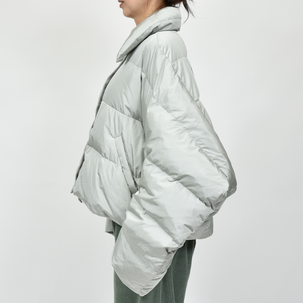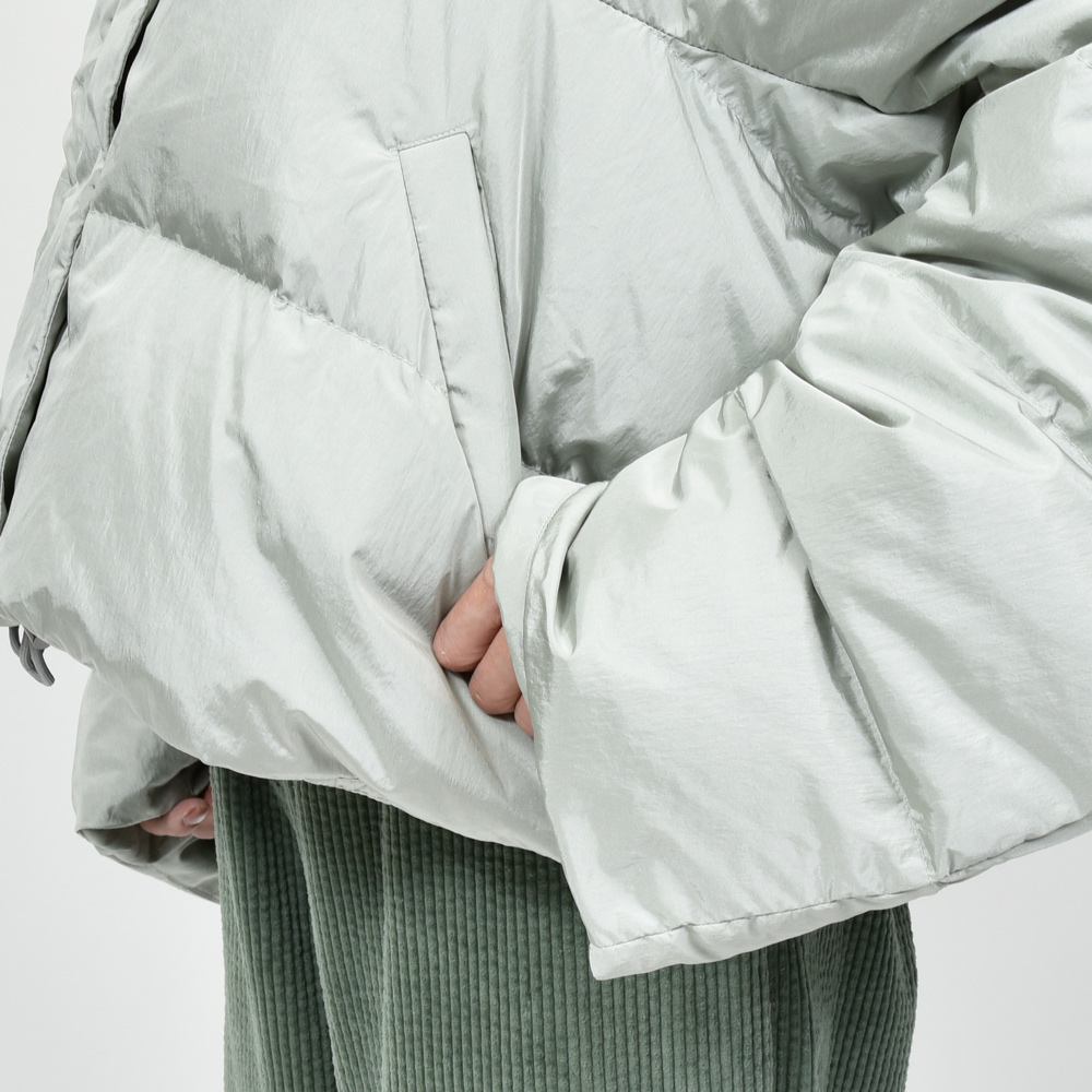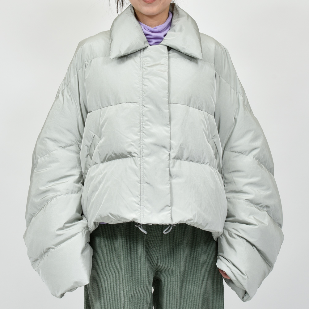 ボリューム感が印象的で目をひくクロップド丈のダウン。